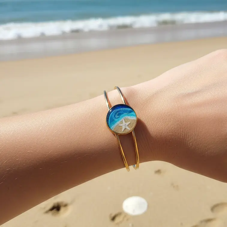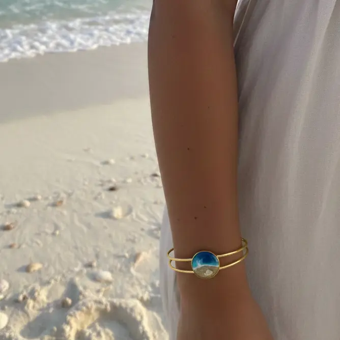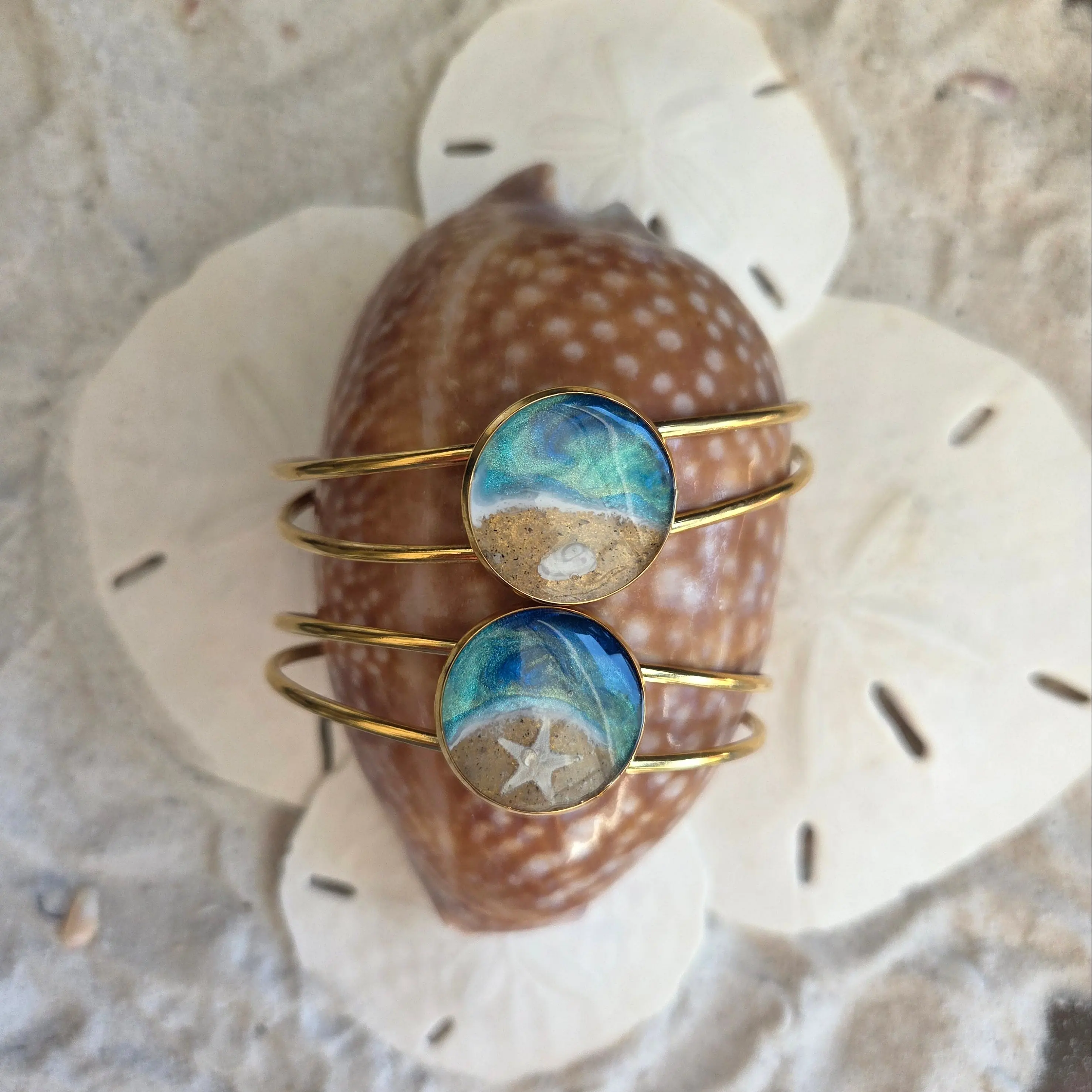 Cuff Bracelet - Florida beach sand Bracelet with shells