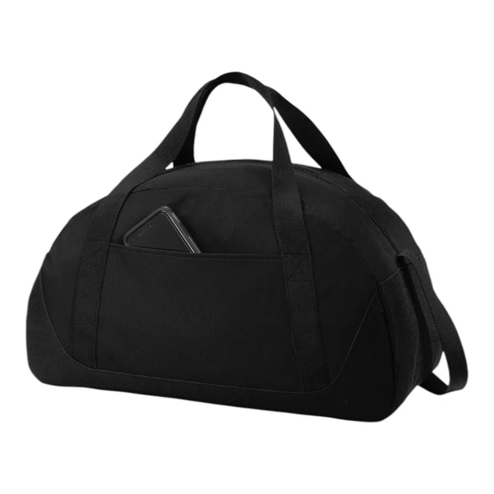 This durable and spacious dome duffel bag is made from 600D poly canvas, offering both strength and style. With a front slip pocket for easy decoration, this duffel provides a large, zippered main compartment and an adjustable web shoulder strap for comfortable carrying. The web handles add extra convenience, making it the perfect accessory for travel, gym, or sports activities.