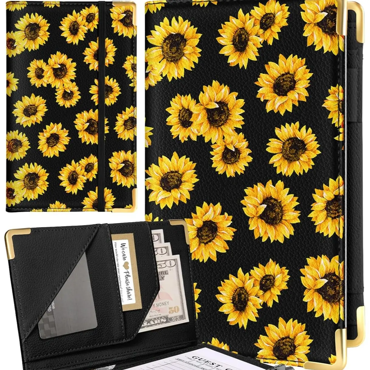 ·DURABLE PU LEATHER: Made from high-quality PU leather, this server book is soft to the touch yet strong and long-lasting. It is resistant to water and oil, making it easy to clean and maintain. Reinforced metal corners provide added protection, while the elastic closure helps keep your items securely in place.