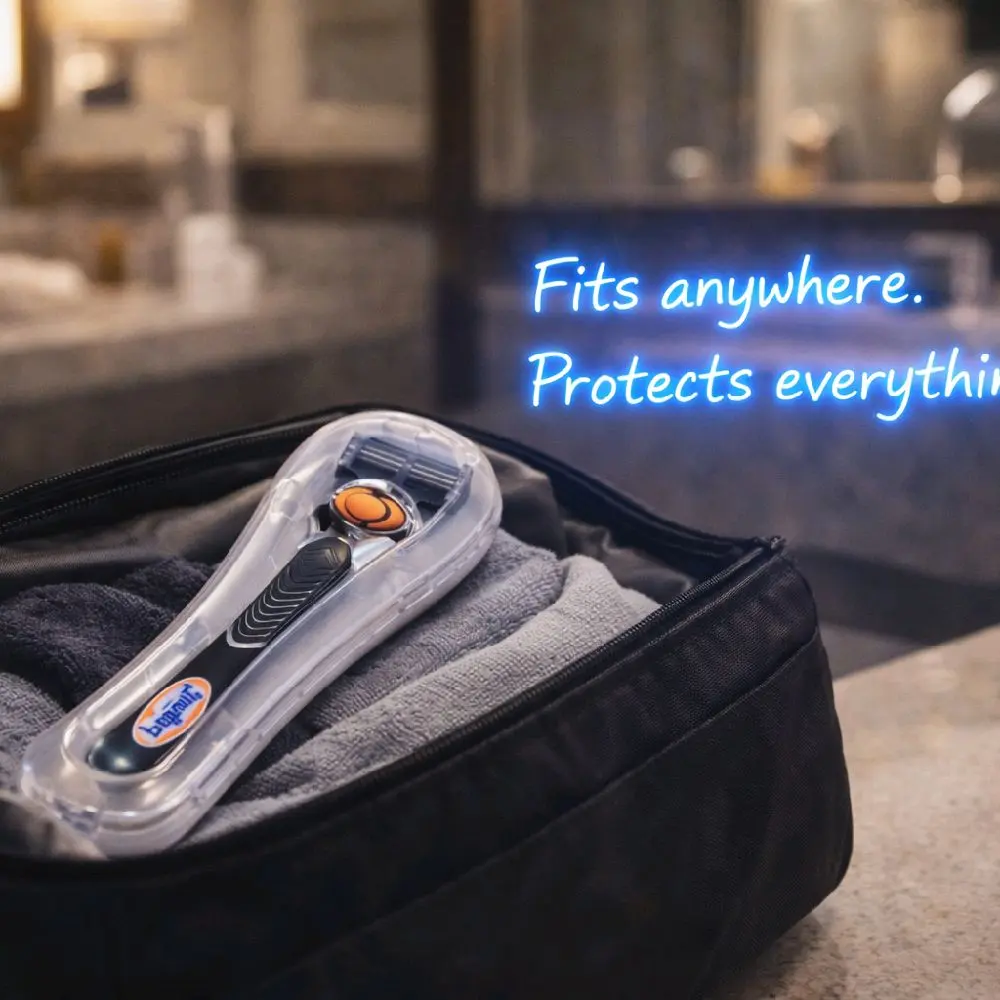 [Case conveniently stores manual razor. Protect your razor from moving around. The light weight case fits neatly into the your carrying case or lugguge perfect for travel. Well designed to fit for most manual razor system 1 handle + 2 blade compatible with Gillette Fusion Proglide Quattro Hydro Dorco PaceWilkinson Sword etc. Breathable design allows the air comes in drain away extra water and keep your razor dry. Made of durable plasticmaterial BPA Free shatter-proof scratch-resistant easy to clean No odor. A compact travel razor protector. Protects your razor while keeping dust away.]