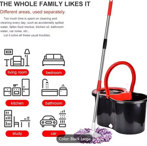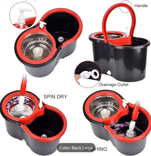 Clean your floors faster and with less effort using this 360° Spin Mop & Bucket System. The built-in spin wringer allows hands-free water removal, helping you control moisture and avoid over-wet floors. The microfiber mop head lifts dirt, dust, and spills efficiently, making it ideal for daily cleaning.