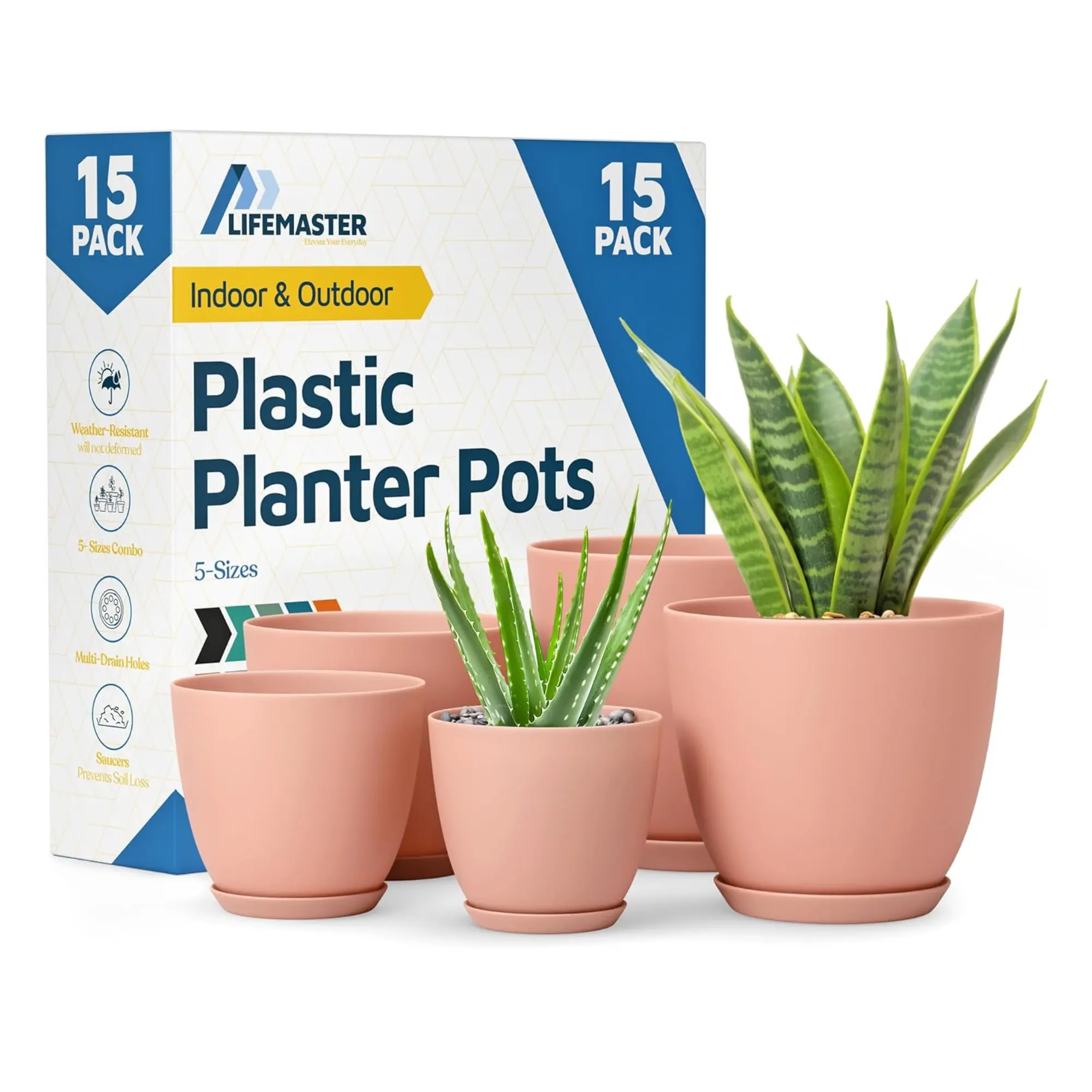 Upgrade your plant setup with this 15-pack of pink plant pots designed for functionality and style. Each pot features multiple drainage holes to prevent overwatering and support healthy root growth, making them ideal for succulents, herbs, and indoor plants.