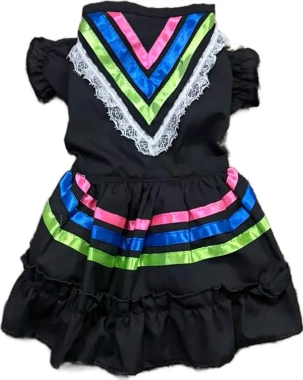 5. Folkloric Dress for Dogs Cinco de Mayo Neon Colors Black Dress for Pets Perros