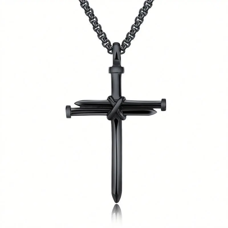 🌟 Steel Gold Black Color Fashion Mens Iron Nail Cross Pendant Necklace 🌟