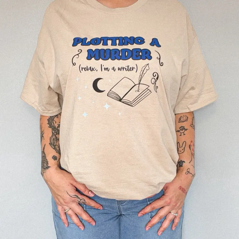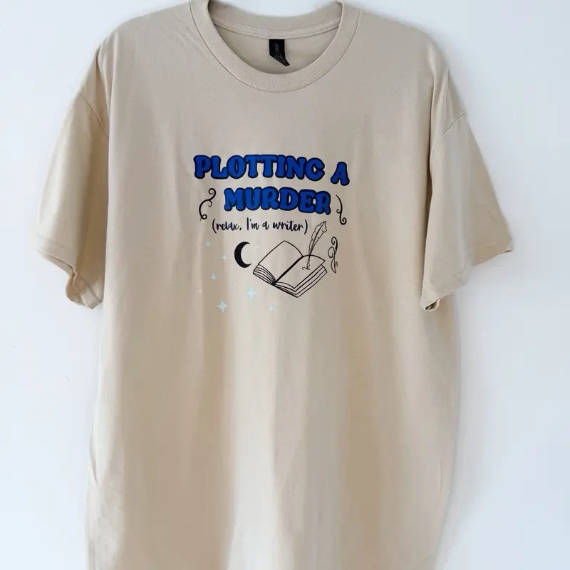 Plotting a Murder Tee - Women's Casual Top with "Relax, I'm a Writer" Design, Perfect for Book Lovers - Womenswear Crewneck Tshirt