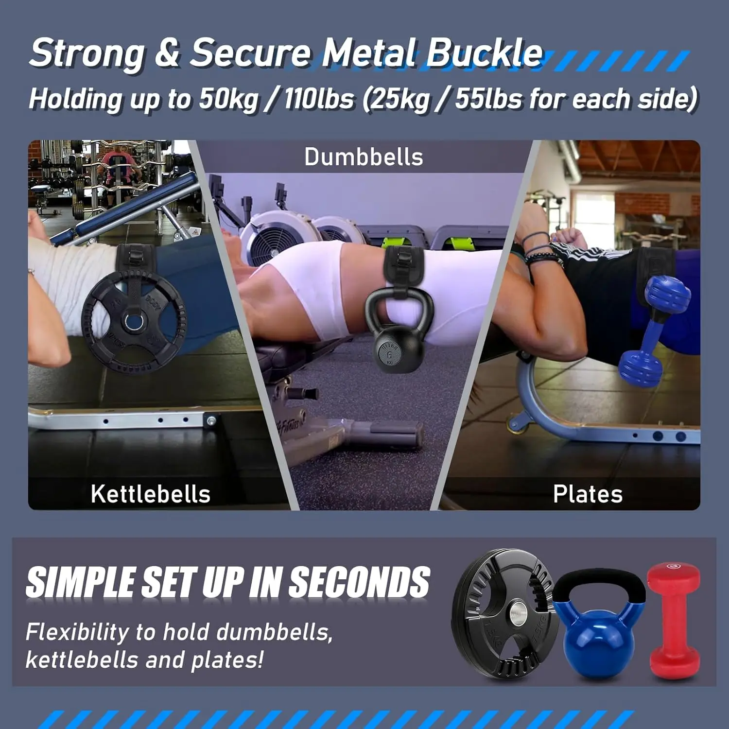 ·Secure strap system keeps weights stable throughout movement