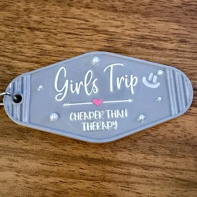 Hotel Keychains - Set of 5 "Girls Trip" with Colorful Designs and Metal Rings for Keychains