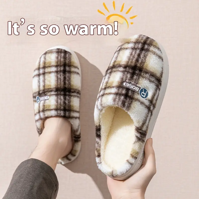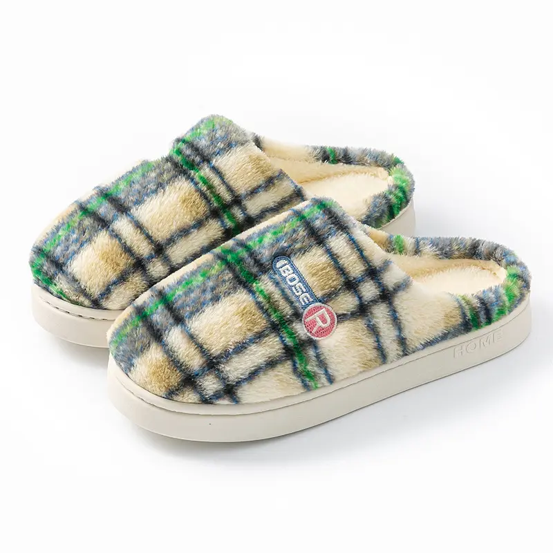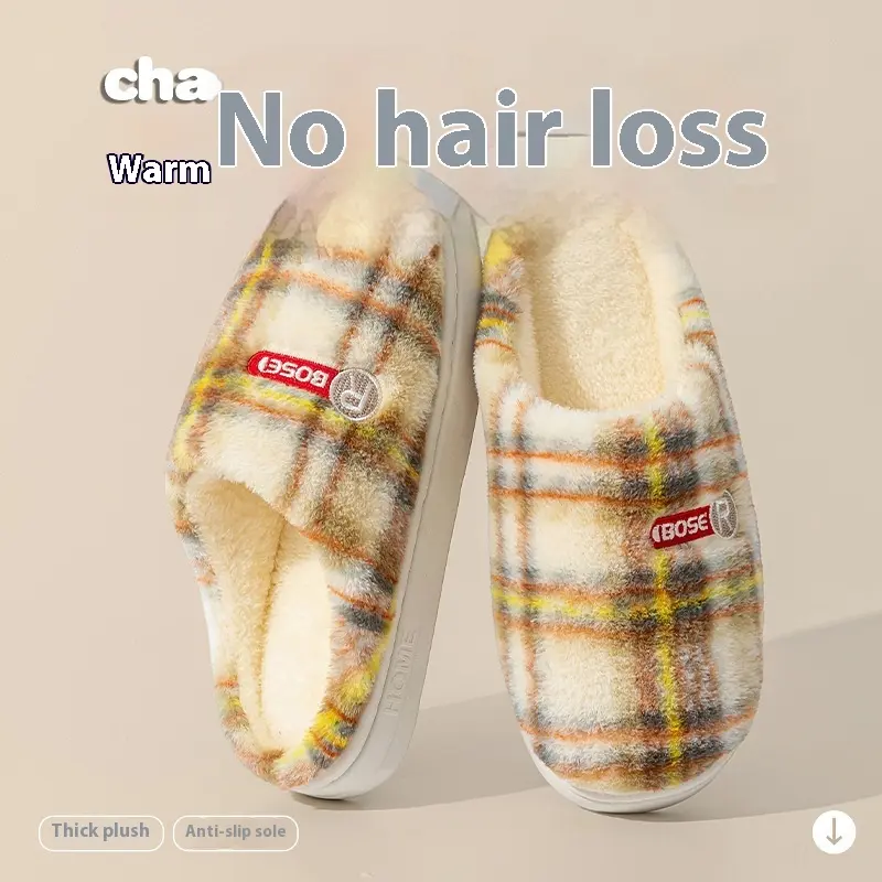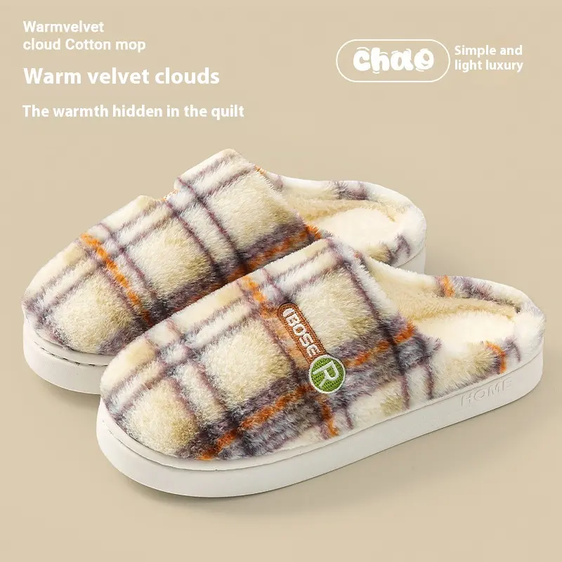 Women's Home Plush Warm Non-slip Plaid Cotton Shoes