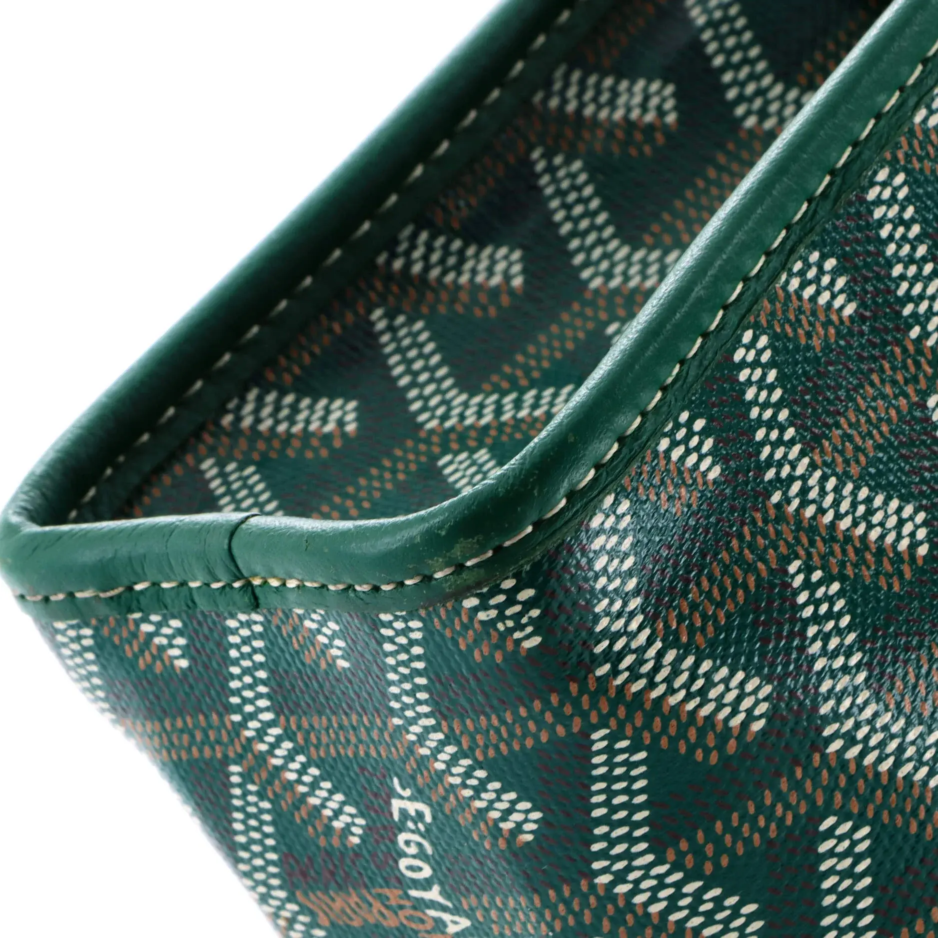 These are professional pictures of the actual item offered by Rebag. Condition: Very good. Exterior: corner wear, minor creases | Interior: scuffs, light odor | Hardware: scratches Accessories: No Accessories Measurements: Handle Drop None", Height 7.5", Width 10", Depth 2.5", Strap Drop None" Designer: Goyard Model: Jouvence Toiletry Pouch Coated Canvas MM Exterior Material: Canvas Coated Exterior Color: Green Interior Material: Fabric Interior Color: Orange, Yellow Hardware Color: Silver Item Number: 411083/1