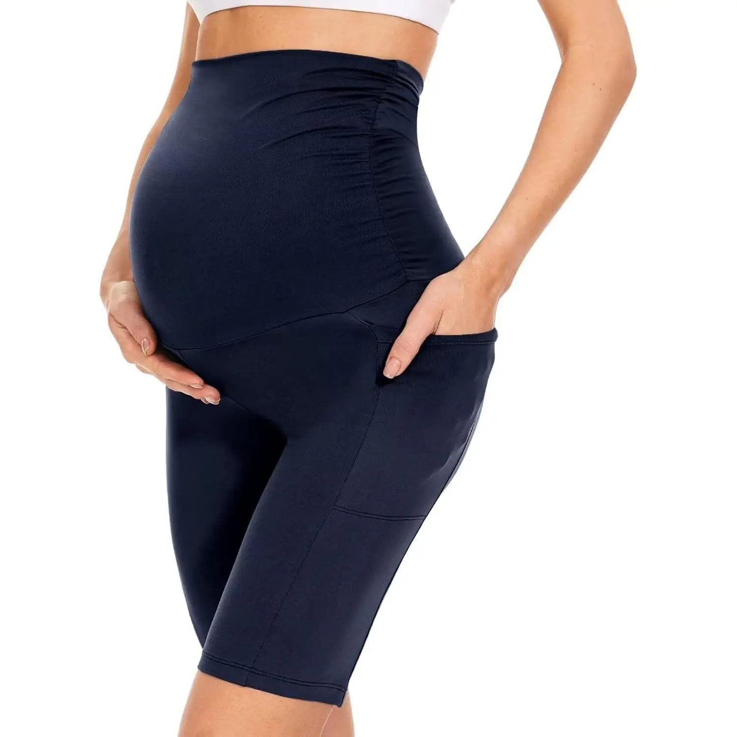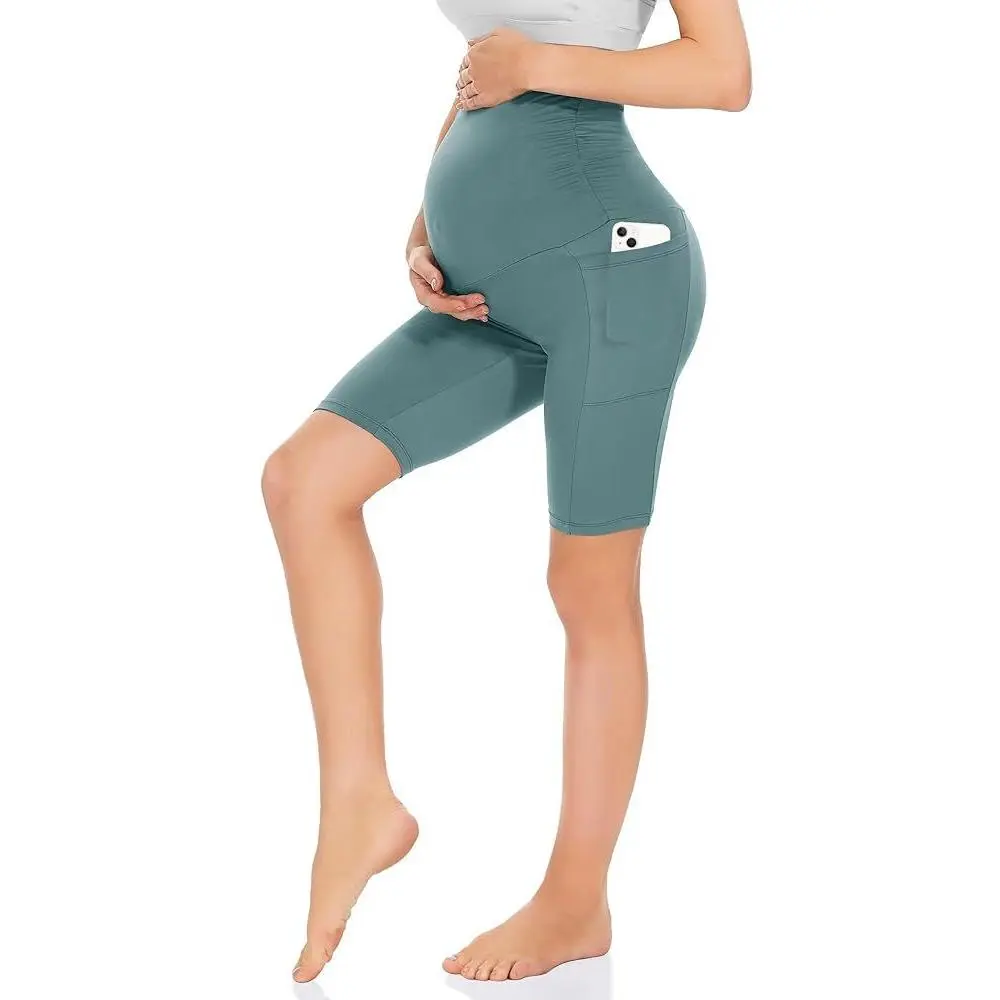 New European and American style maternity pants with five pockets, high-waisted slim-fit belly support pants, sports and fitness maternity yoga pants