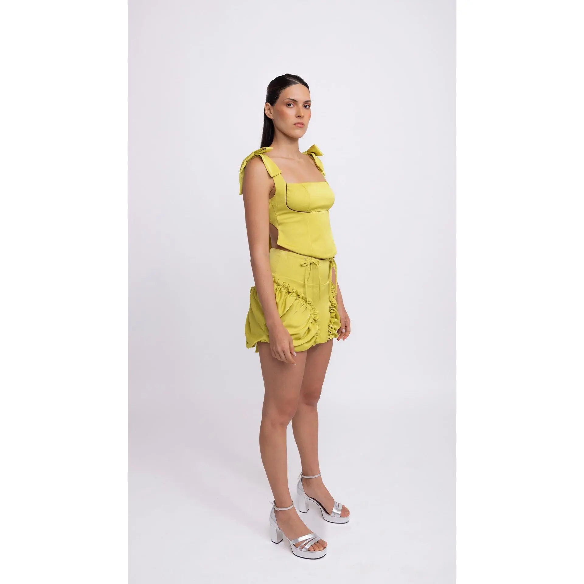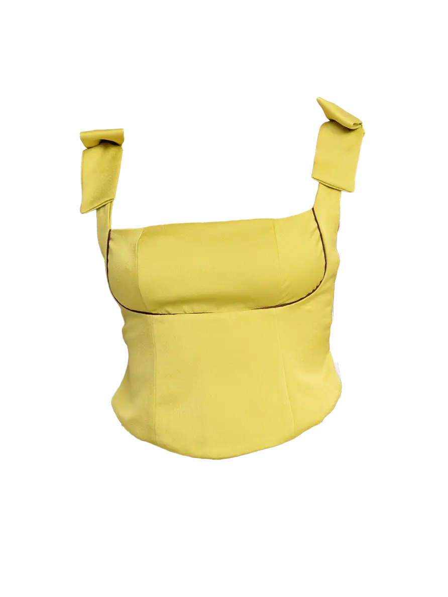 A modern square neckline top with delicate shoulder ties and an open back, designed as a refined statement top for day-to-night wear.