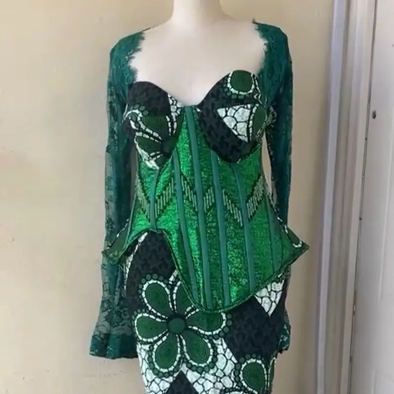 Viral African Corset Set Luxury Ankara Fit Set Snatched Waist Corset Skirt Set