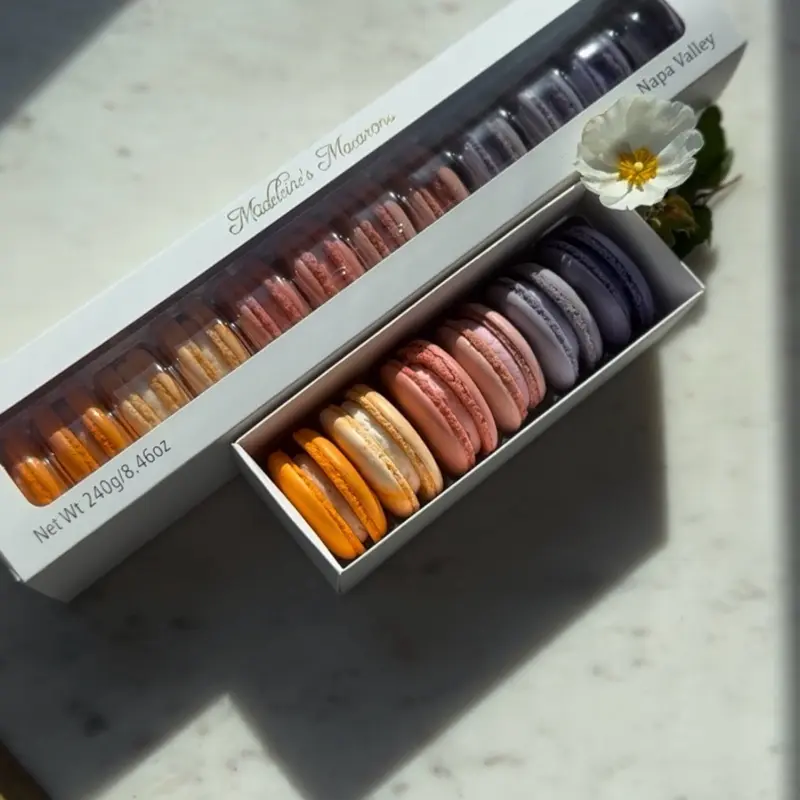 Our Bouquet of Flowers macaron box is a collection of delicate, floral-inspired flavors designed to feel like opening a fresh bouquet… but better. Each macaron is handcrafted with crisp shells, soft centers, and perfectly balanced flavors that are subtle, elegant, and just a little unexpected.