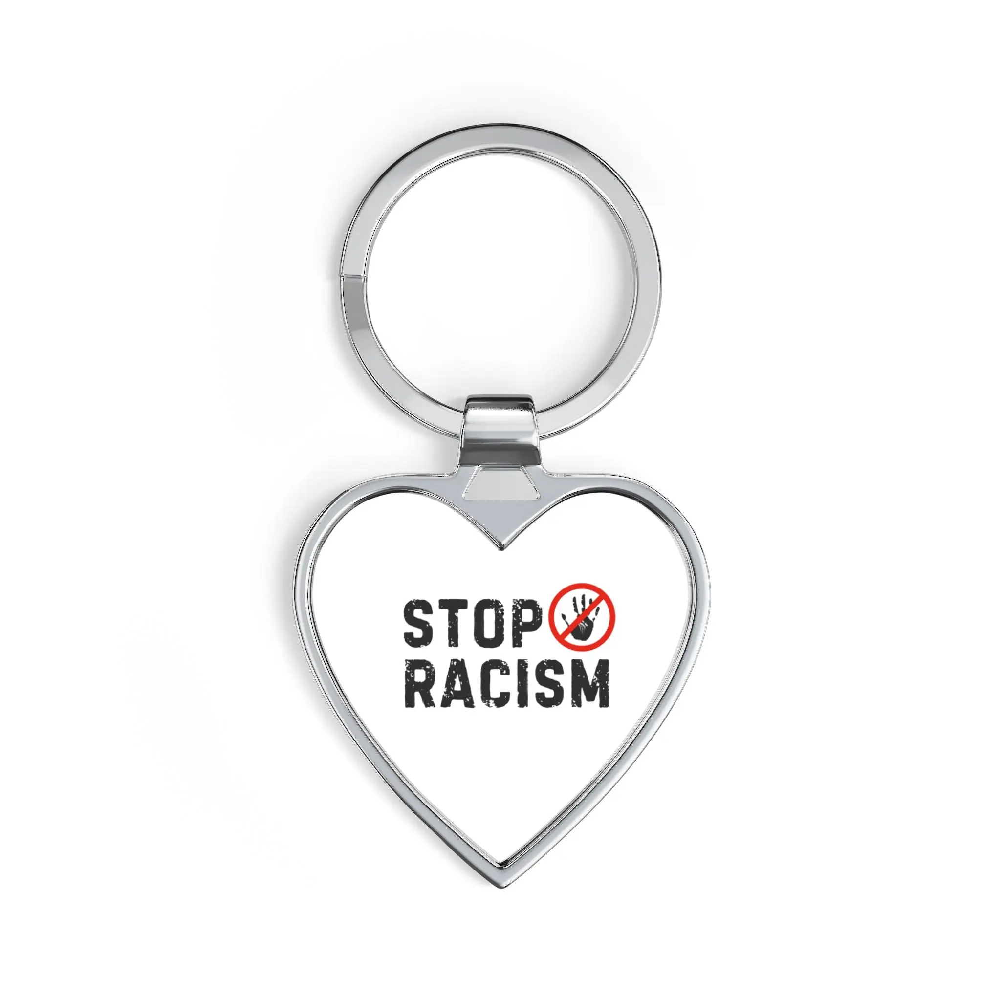 Stop Racism Heart Keychain — Anti-Racism Message Metal Keyring