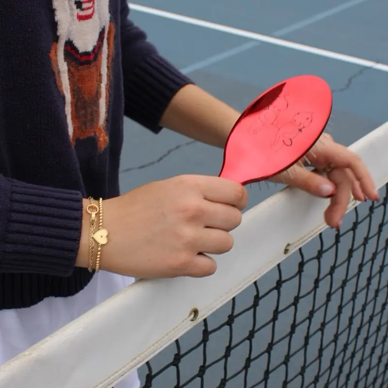 Red chrome metal bristle detangling brush perfect for extensions , blonding, wigs , curly hair etc. Made for hairstylists or everyday use at home