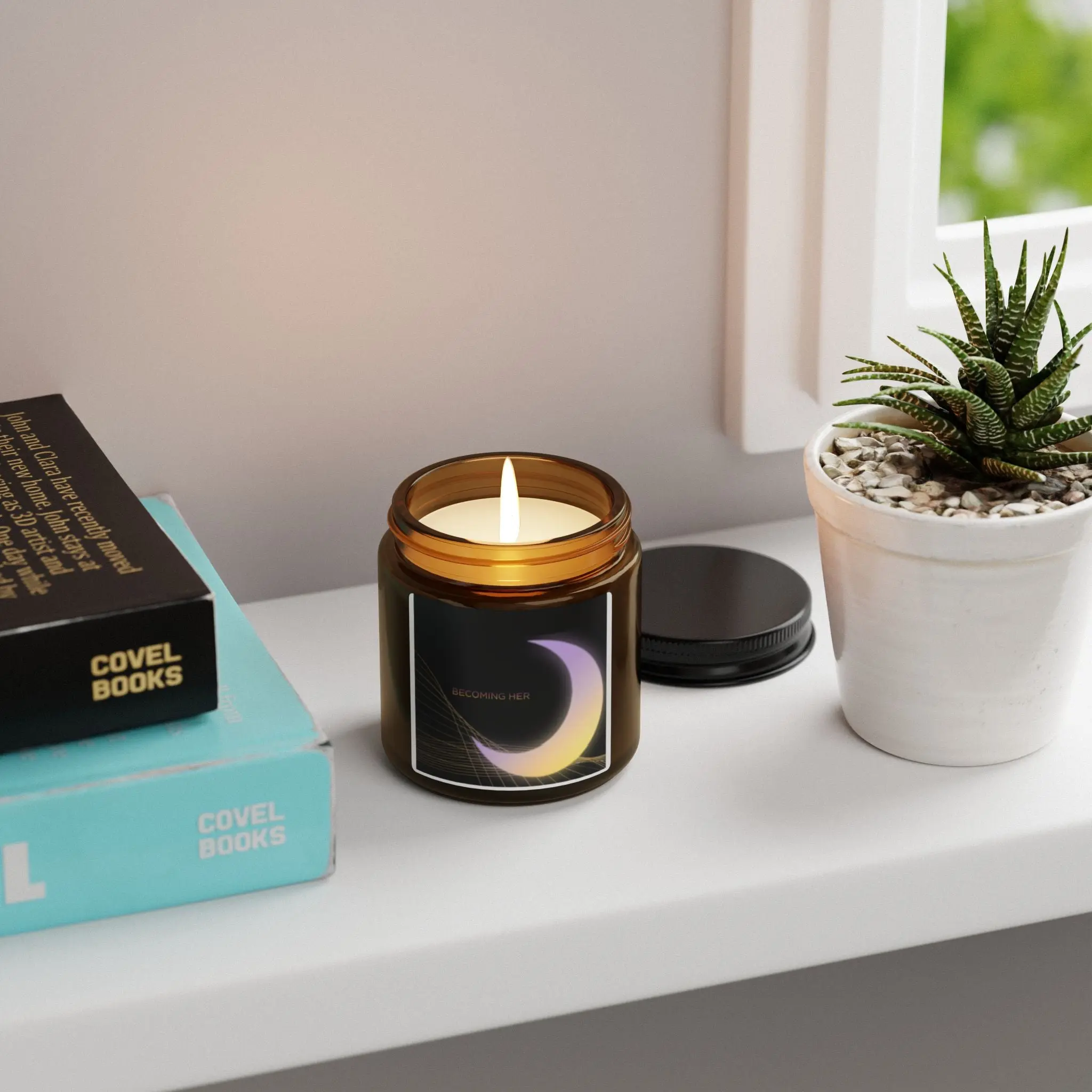 - Reusable amber glass jar — clean and repurpose as decor after burning.