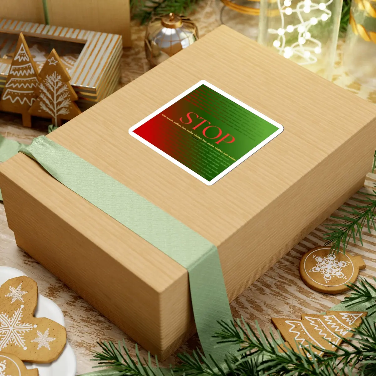 Bold, simple, and unapologetic — this glossy kiss-cut sticker states a clear message with striking red text over a green-to-red gradient backdrop. Subtle repeating words form a textured field behind the centerpiece, creating depth and a slightly urgent, poster-like feel. Sized for laptops, journals, windows, and other smooth surfaces, the vinyl sticker lays down smoothly and stays put thanks to a strong permanent adhesive. Choose white or transparent backing to either frame the design or let your surface show through. These stickers are made from durable vinyl and printed with bright eco-solvent inks for colors that pop and resist scratches during everyday use.