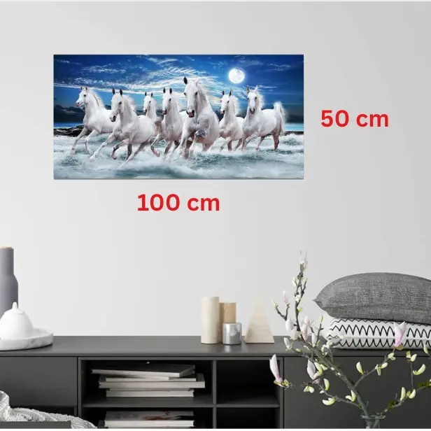 Bring home energy, success, and positivity with this stunning 7 running horses wall art, beautifully crafted on premium canvas. In Vastu, 7 horses represent growth, strength, and unstoppable progress—perfect for your home or office.