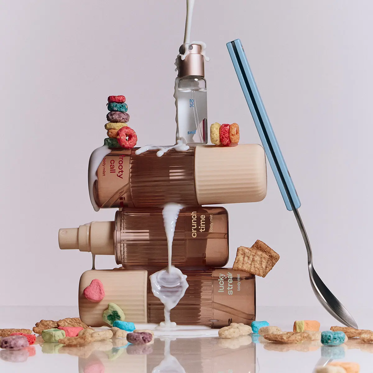 Start your day with a spray of 2%. Then, mist on a layer of Lucky Streak’s marshmallow madness, Crunch Time’s cinnamon spice, or Frooty Call’s vibrant citrus. Mix, match, and build your ultimate cereal bowl scent.