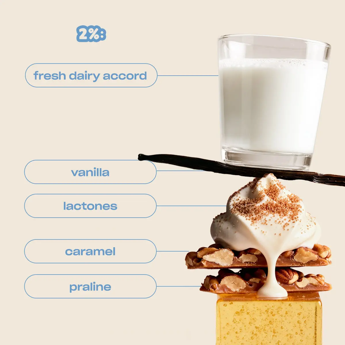 2%: milk carton accord • fresh dairy • lactones • vanilla, praline, caramel