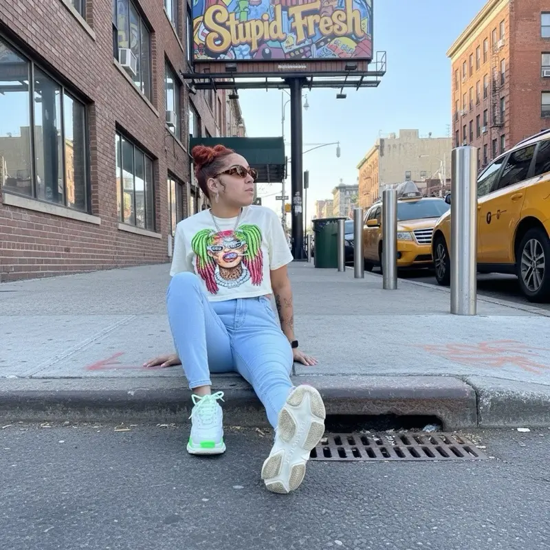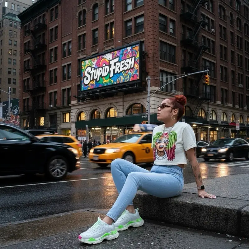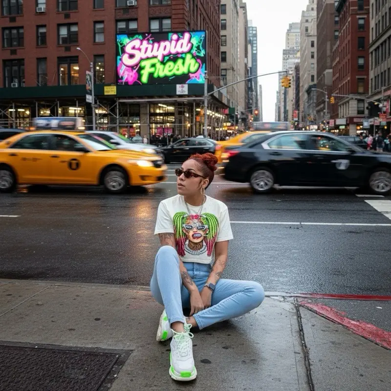 Women's Stupid Fresh Black T-Shirt with Bold Graphic Design and Unique Artwork