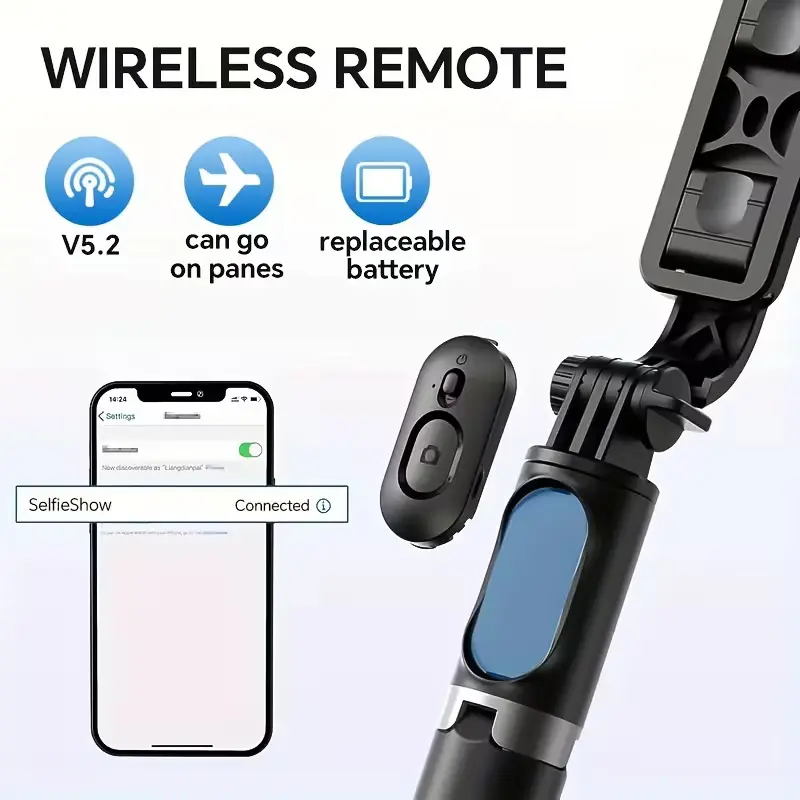 Elevate your vlogging game with this 40” Selfie Stick Tripod. Perfect for capturing stunning shots, it features a 360° rotating phone stand. The remote control adds convenience, allowing you to take photos from a distance. Ideal for vloggers, this tripod ensures stability and flexibility.
