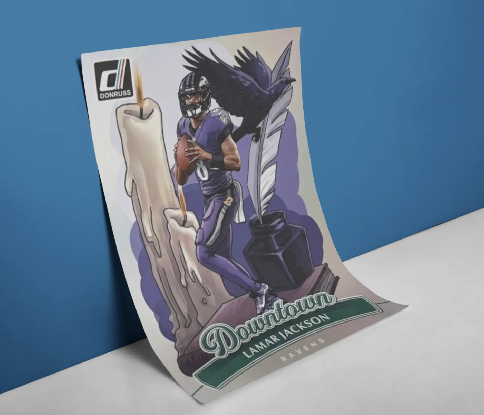 Donruss Lamar Jackson 2025 Downtown Card 12x17 Poster Baltimore Ravens