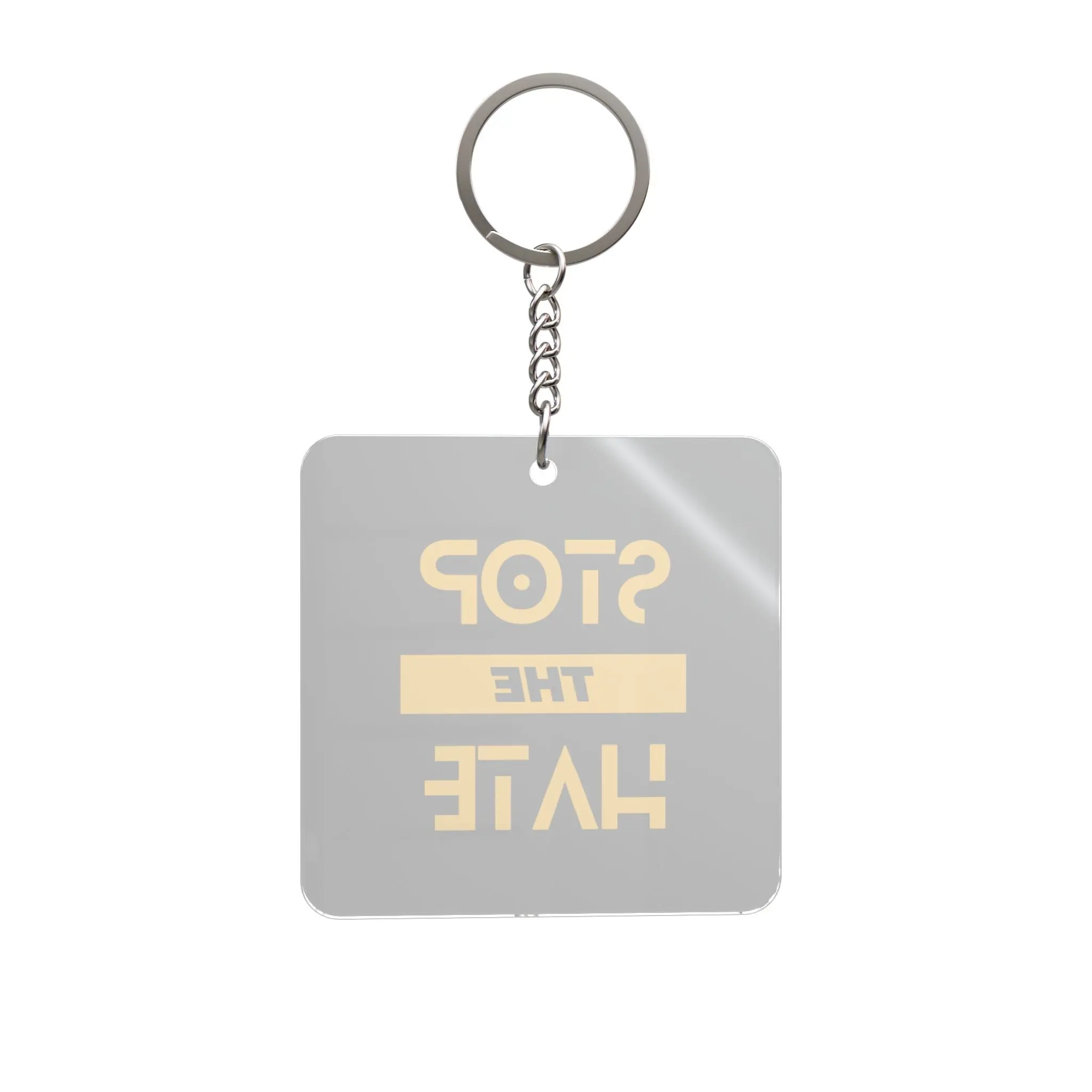 A compact, square acrylic keychain that carries a clear, bold message wherever you go. The transparent acrylic lets the printed design show through from both sides, creating a subtle double-sided effect that catches light and attention. Lightweight and break-resistant, this keychain clips easily to keys, backpacks, or bag zippers, adding a statement of intent to everyday carry. It’s made to withstand bumps and jostles while keeping the artwork vibrant over time. For someone who values durable accessories with a message, this square keychain slips into daily life — visible in pockets, hanging from a commuter bag, or clipped to a gym locker — quietly reminding others and yourself of what you stand for.