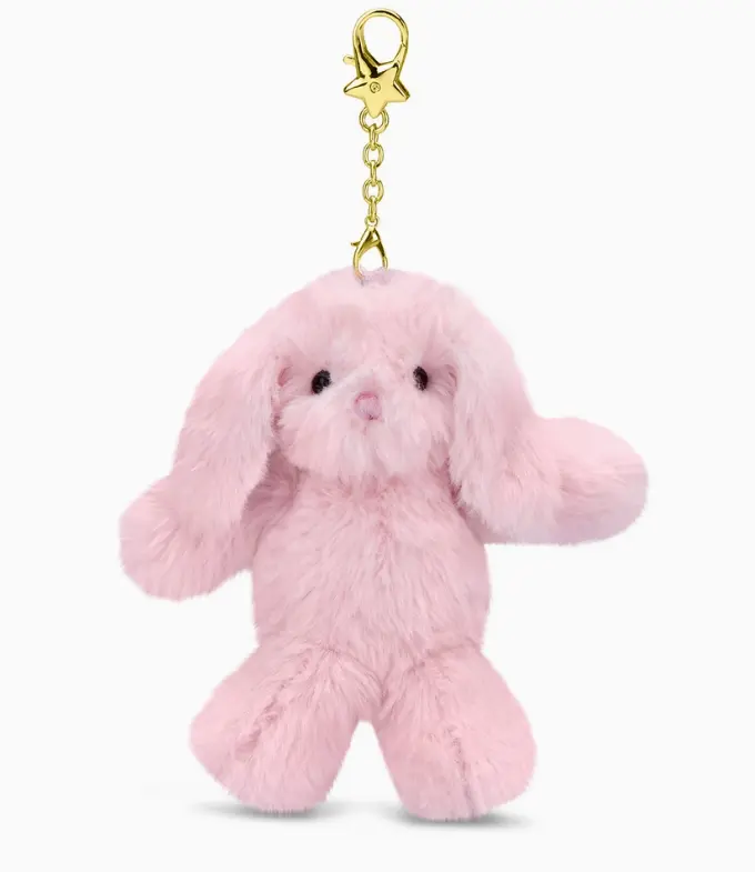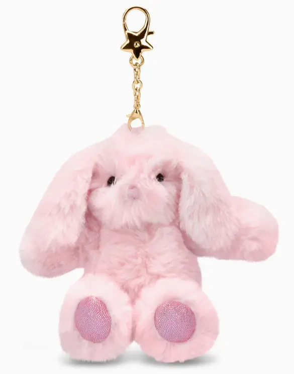 Take your favorite friend wherever you go with this adorable Pink Bunny Charm Clip Bag Buddy from Iscream. This ultra-soft plush features long floppy ears and shimmering pink glitter paws for a touch of sparkle. Made from 100% polyester with polyfiber fill and sweet embroidered details, it's built to last. The included metal chain and gold-tone star clip attaches easily to backpacks, purses, or keys. Standing 4½" tall, it's the perfect companion for school, outings, or everyday adventures.