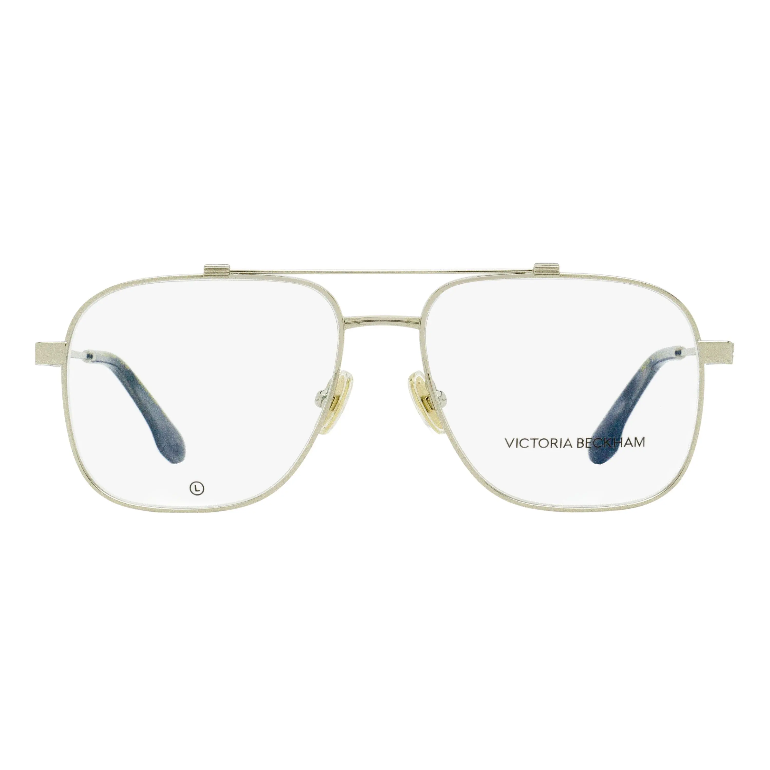 The Victoria Beckham 2138 optical frames feature a classic Navigator shape with a classic double bridge design for women. These frames feature metal construction, acetate temple tips and adjustable nose pads. Victoria Beckham launched her eponymous fashion brand in 2008 with its distinctive and modern style. Her eyewear collection expresses a smart and sophisticated attitude blending classic shapes with modern motifs. Please note these eyeglasses are provided with Demo Lenses in order to demonstrate the final appearance of your frames. Please visit your local Optometrist or Optician to replace with optical quality lenses.