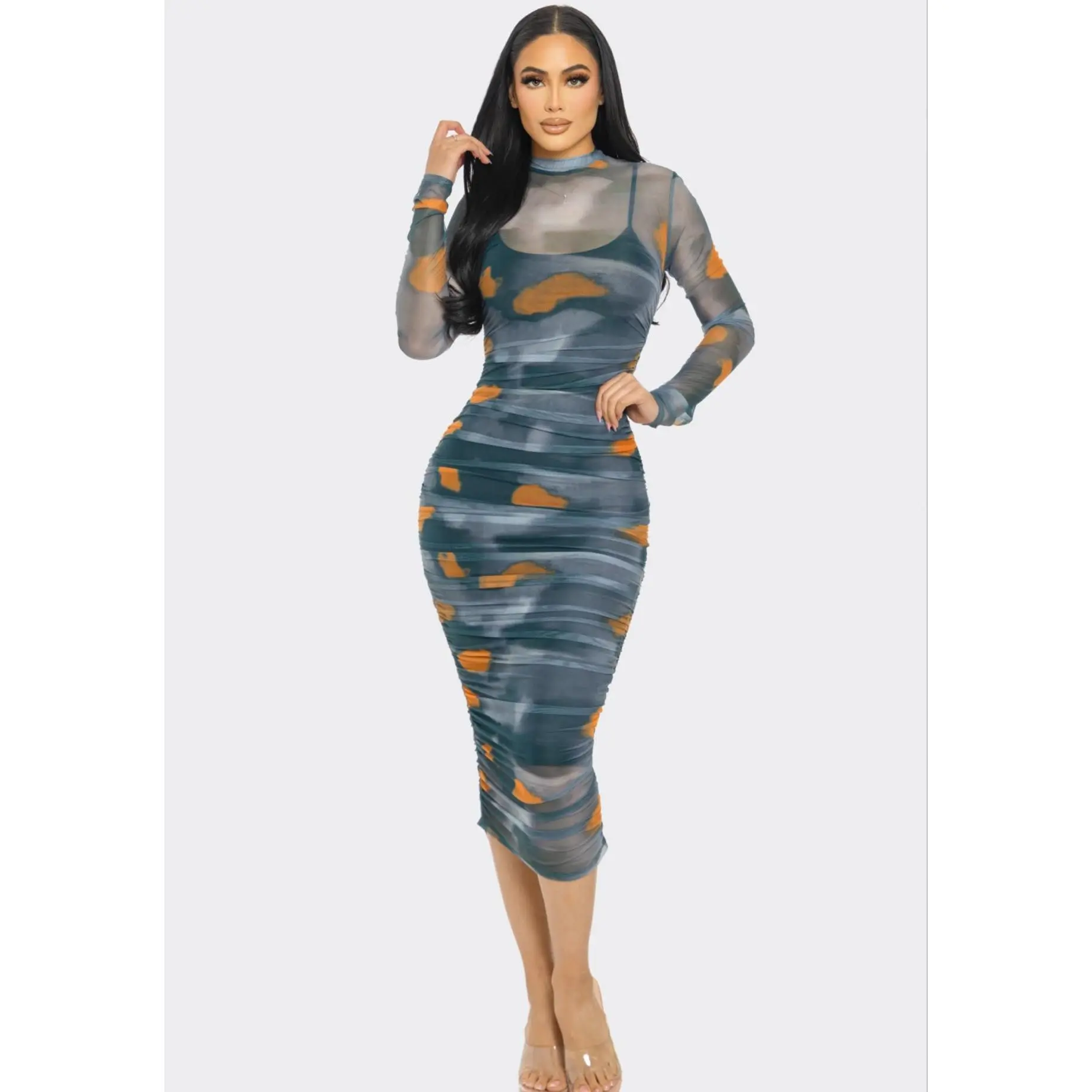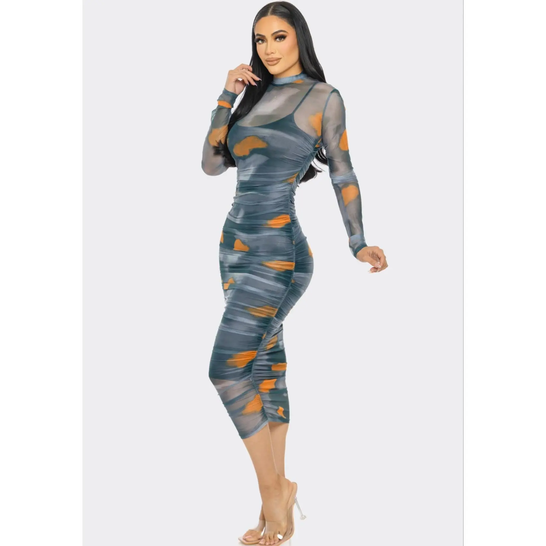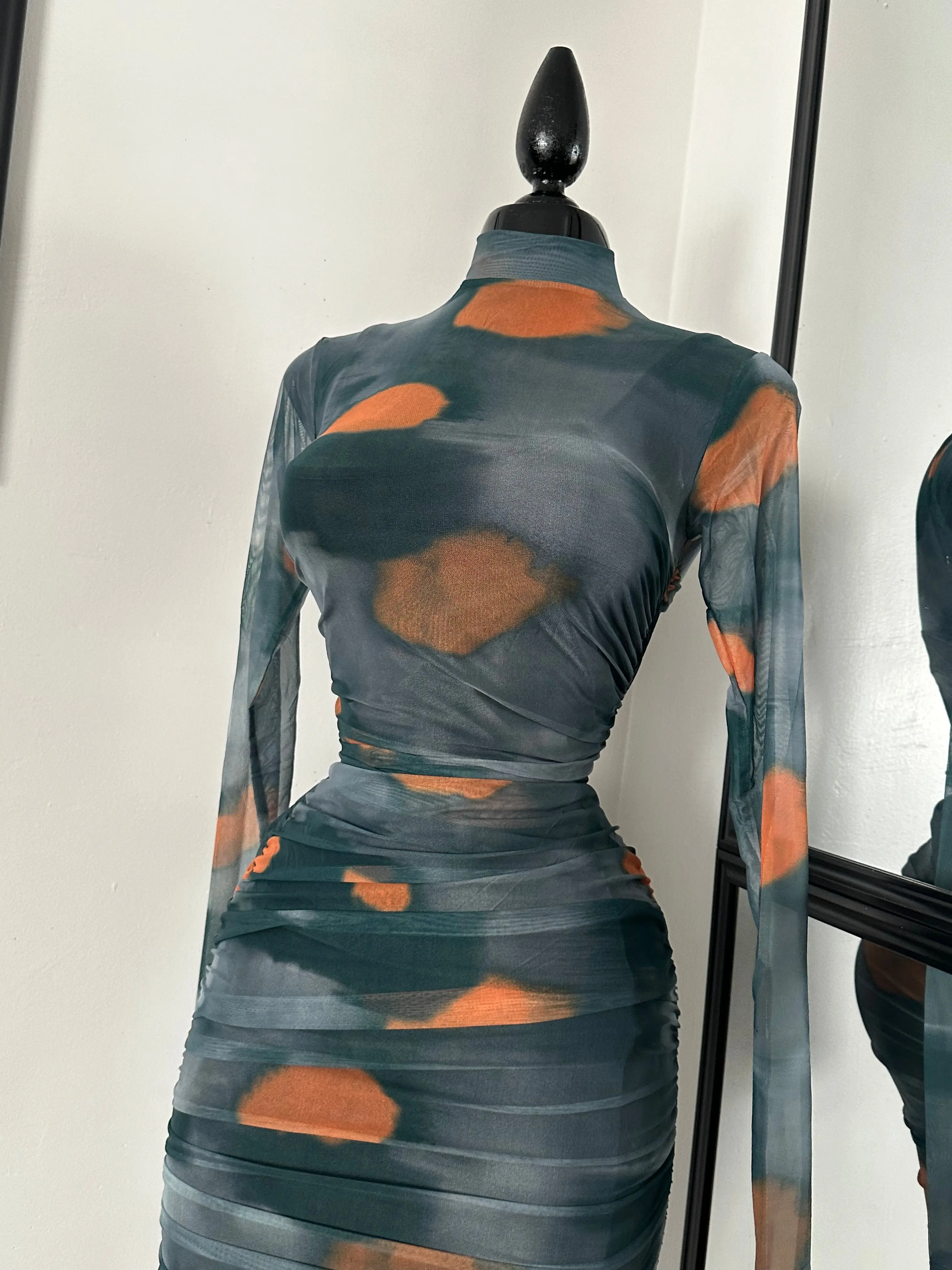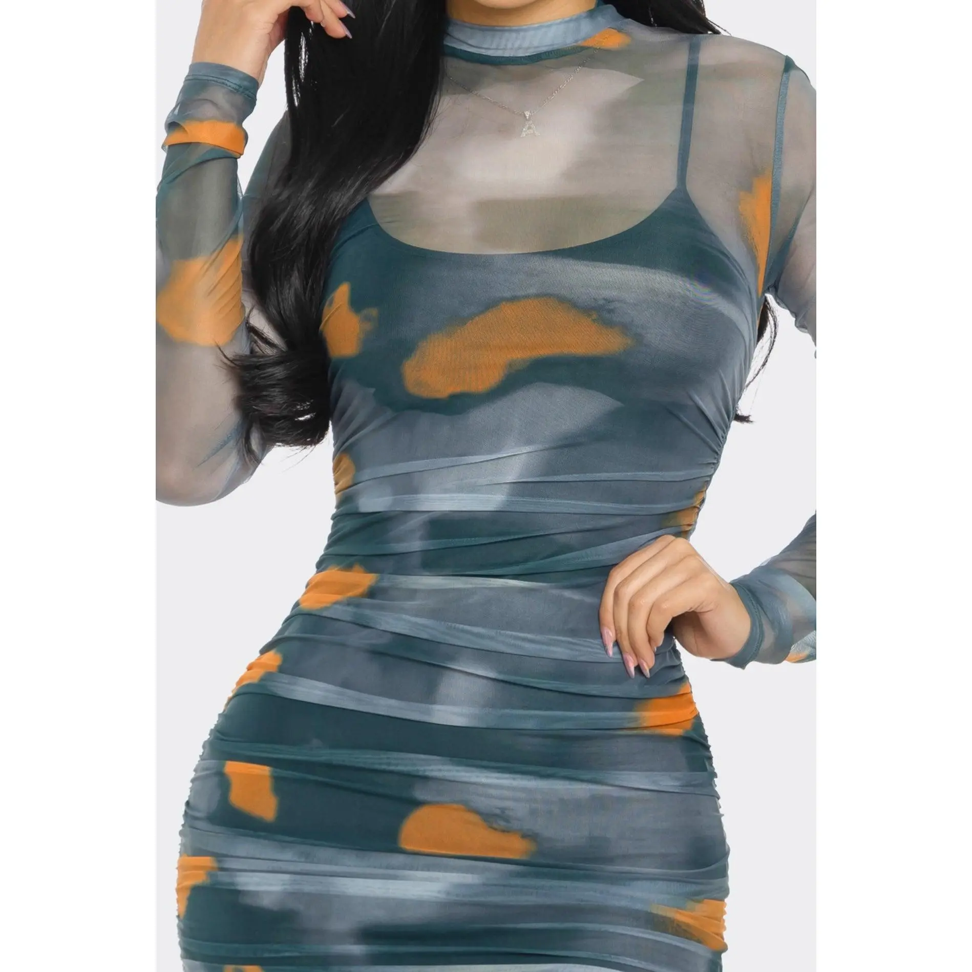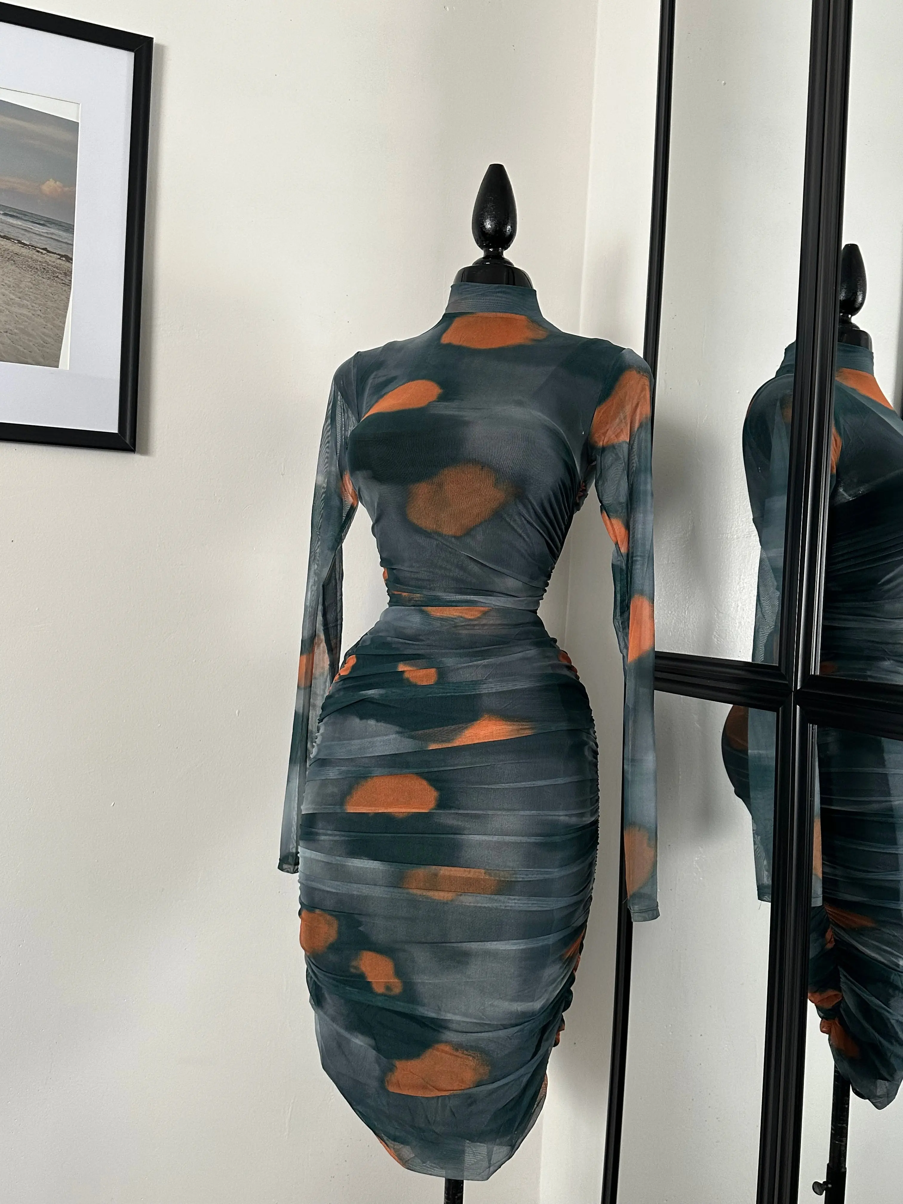 Leopard Print Mesh Mini Dress