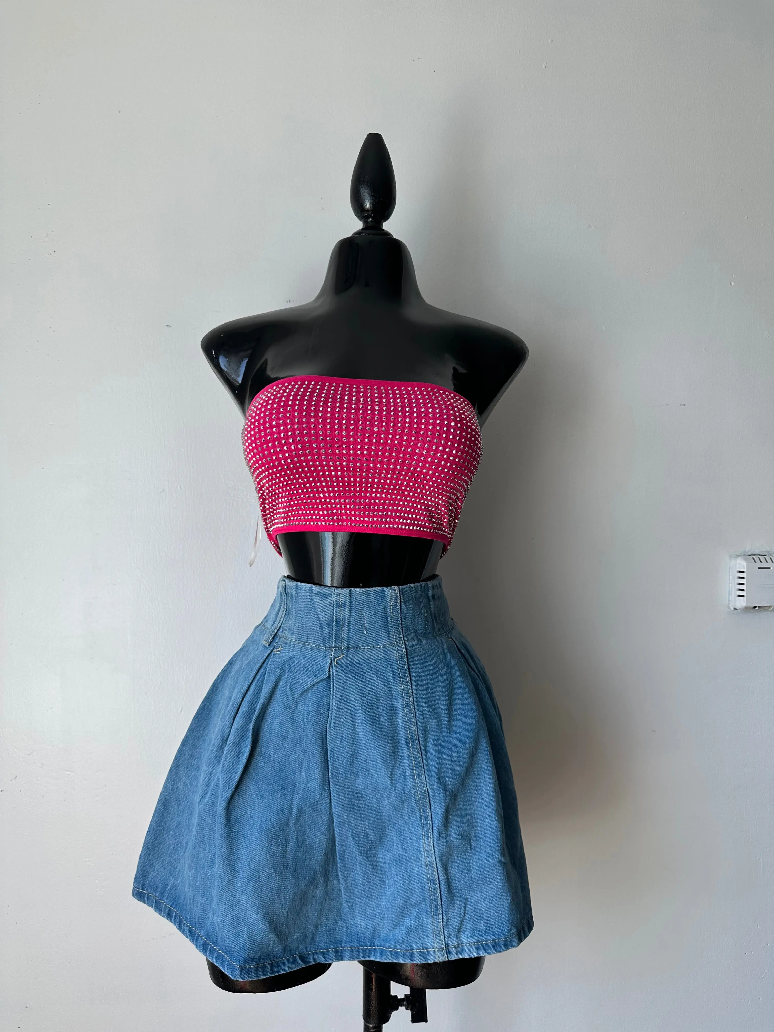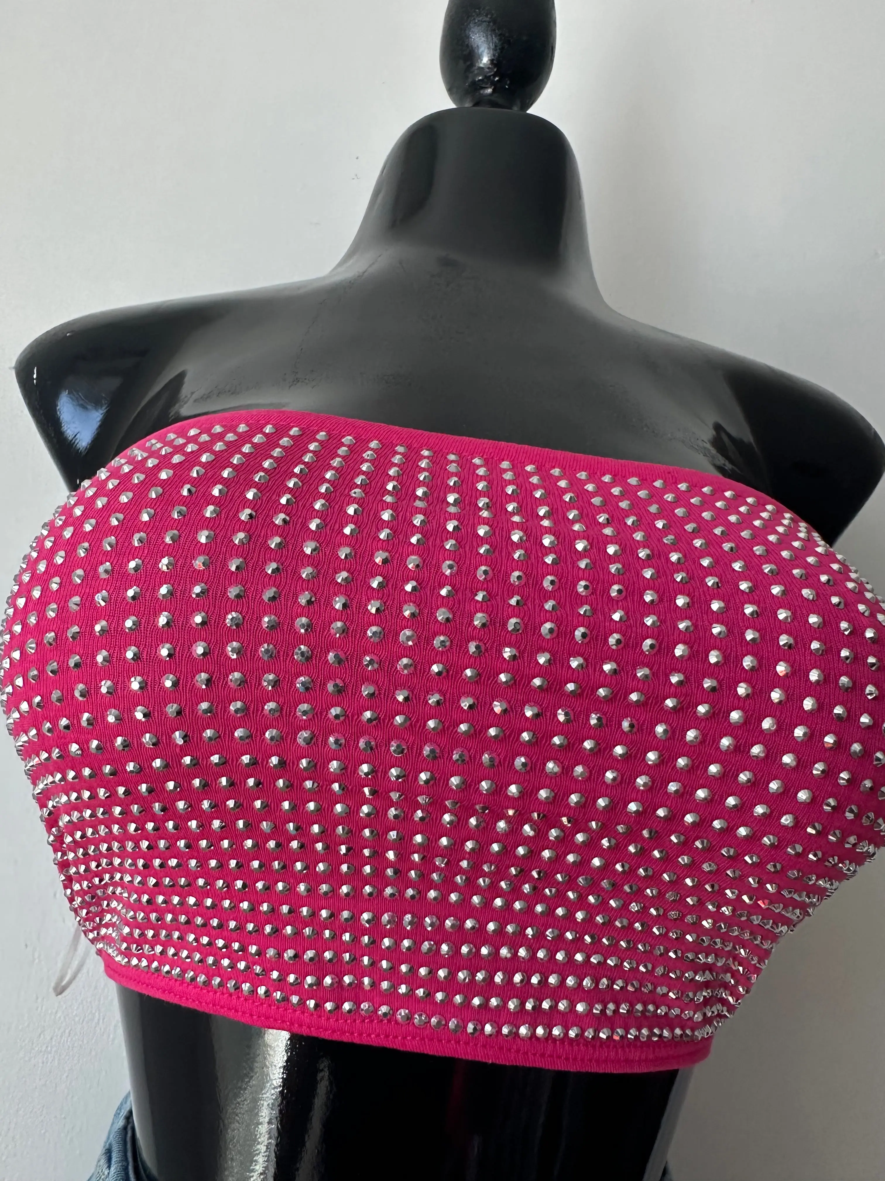 Rhinestones stud tube top. 95% polyester and 5% spandex. true to size stretchy