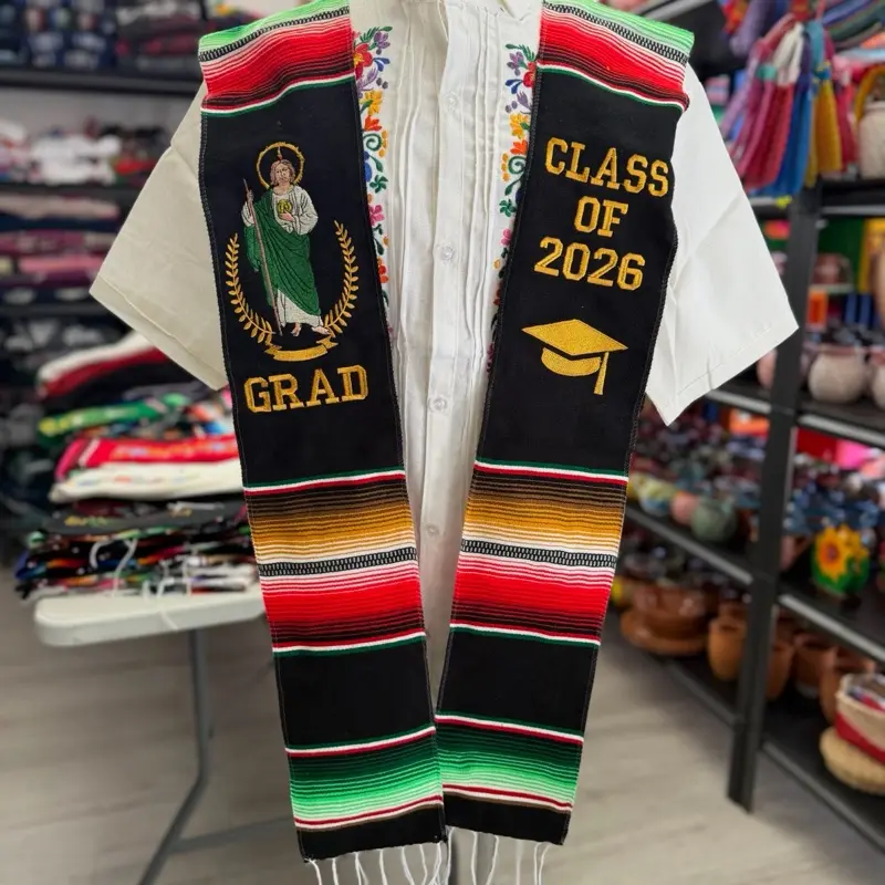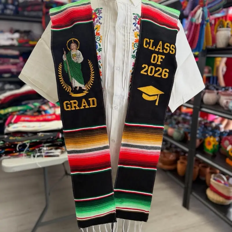 The Sarape blanket stole handmade in Mexico they are of thick woven thread and perfect addition to any graduation outfit to show your Latine Ethnicity Roots and pride.