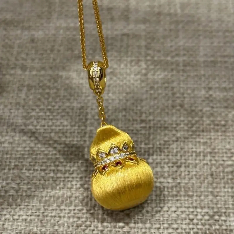 2439 Original Lucky Gourd Safety Buckle Necklace, Traditional Craft, Wealth-attracting Gourd