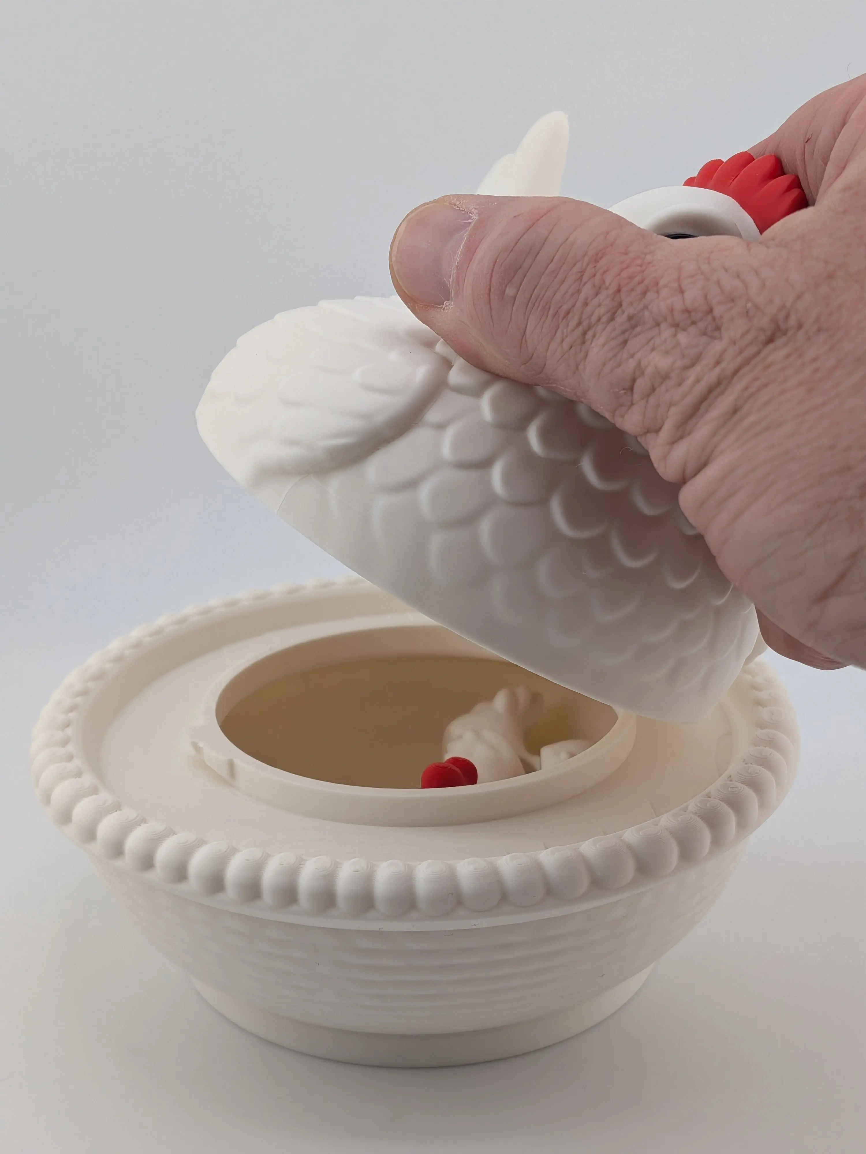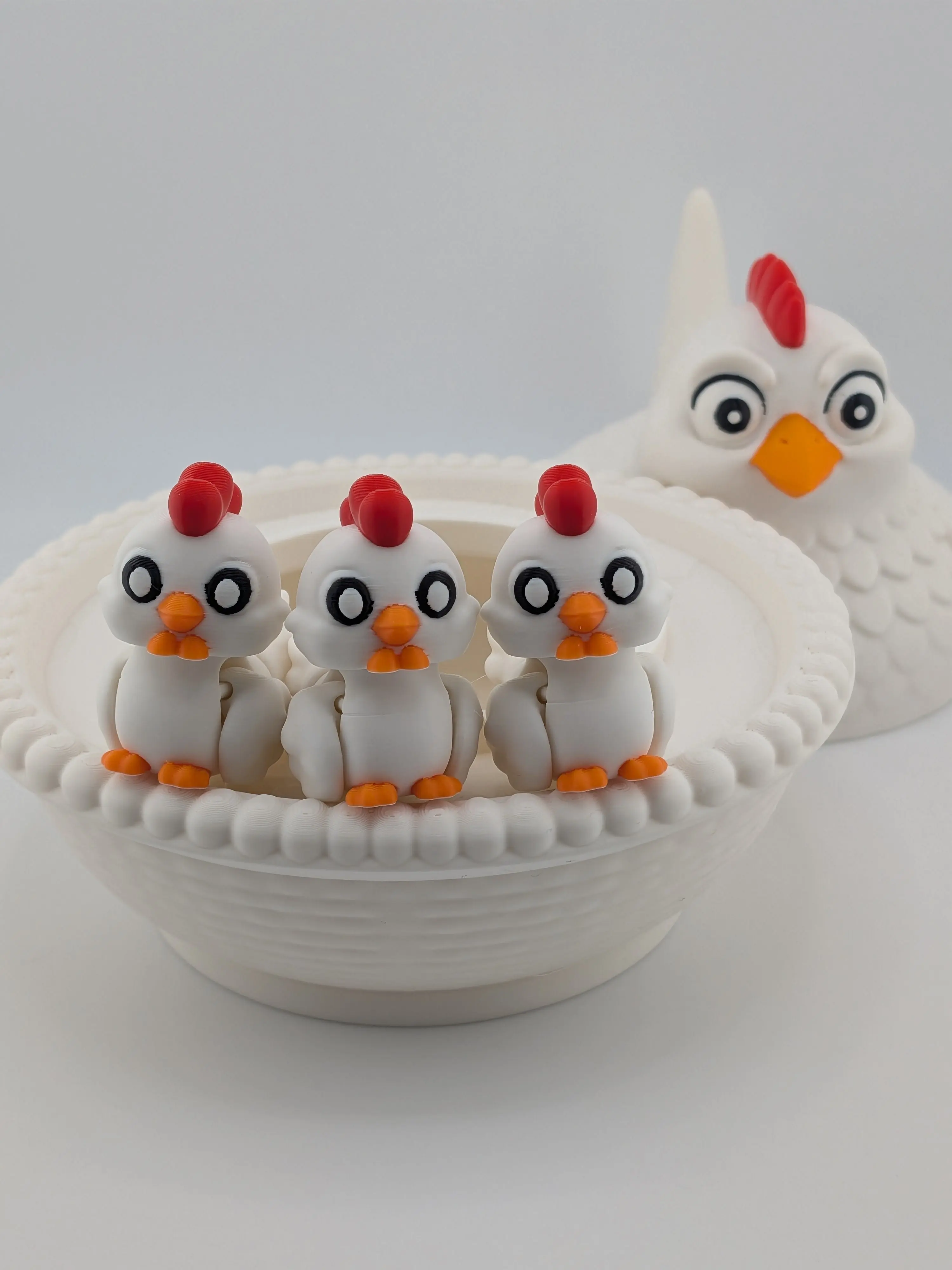 Rule the roost with the ultimate farmyard surprise! πβ¨ Our Mother Hen Nest Bundle is a 3D-printed masterpiece of "farm-core" fun. Featuring a beautiful 5.5-inch diameter basket-weave bowl and a majestic hen lid, this set hides a secret: three adorable, fully articulated mini chicks tucked safely inside! π§Ίπ₯