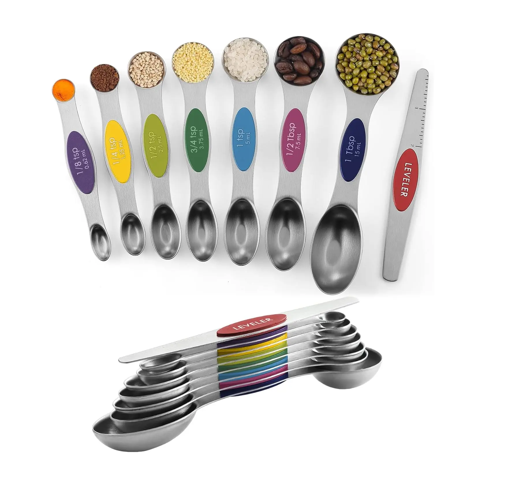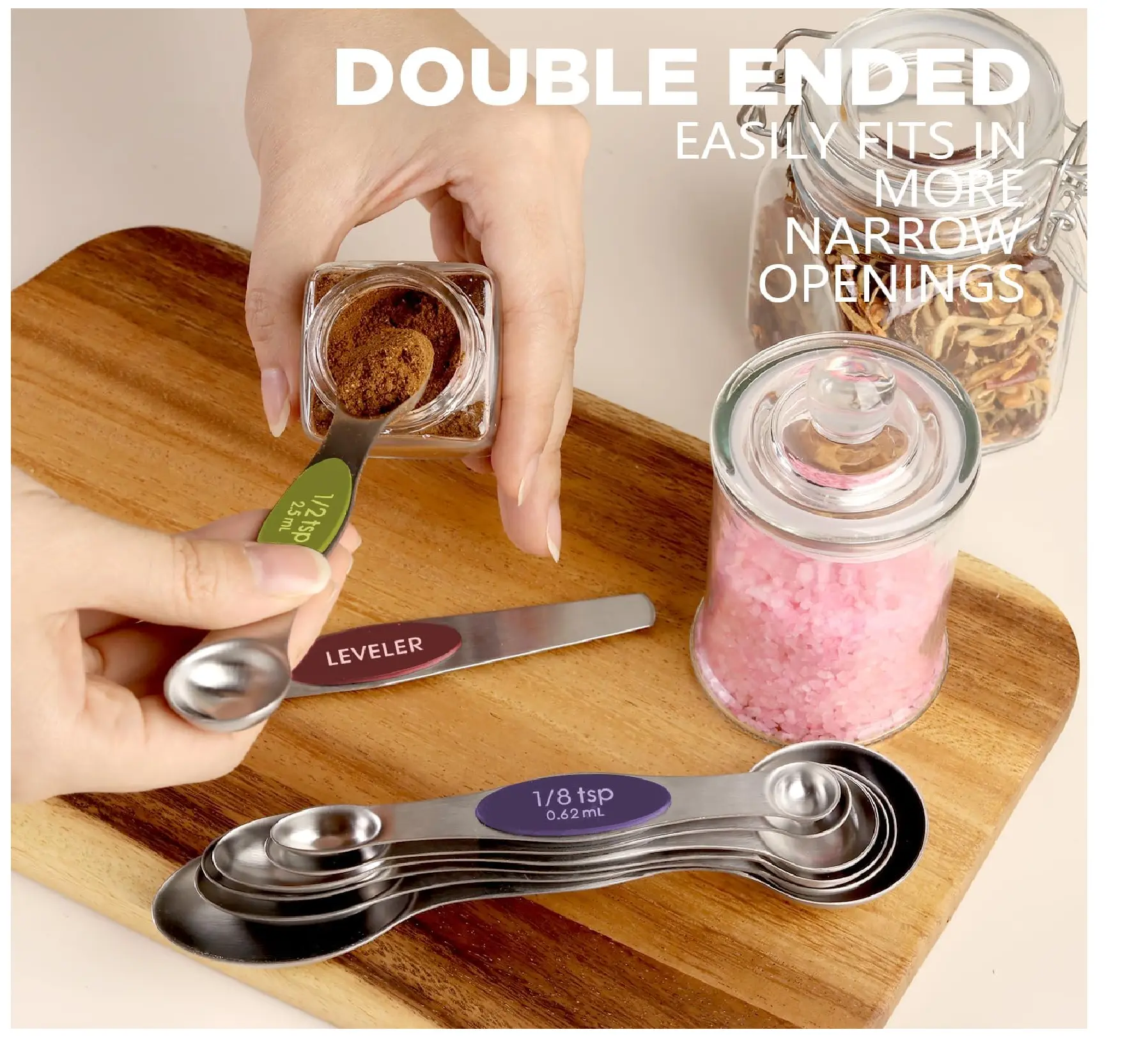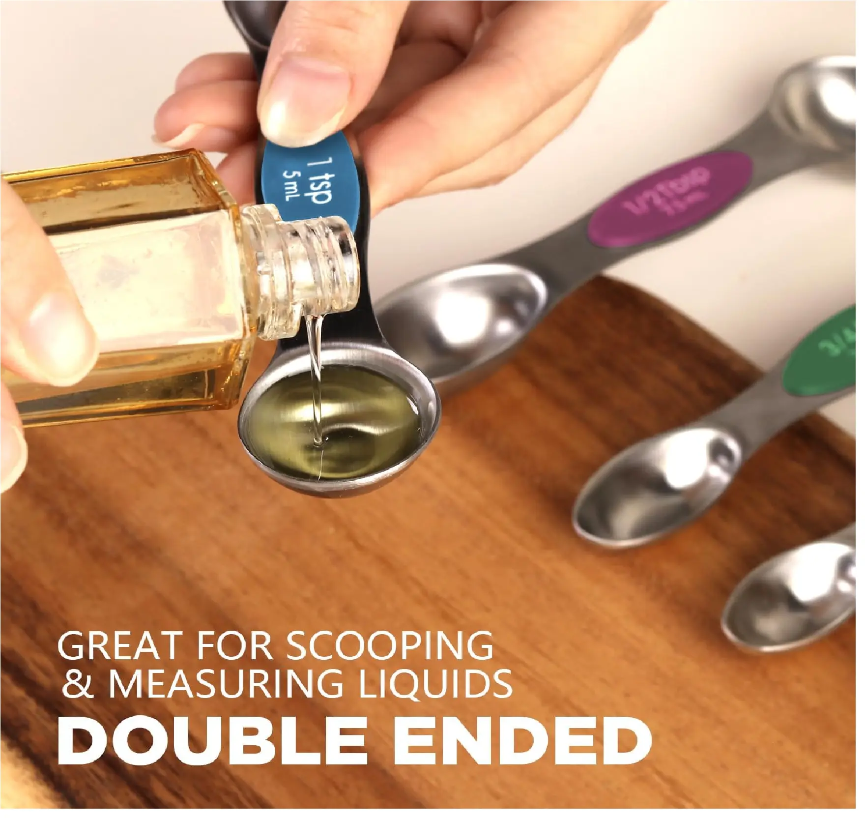 Built-in magnets keep all spoons neatly stacked together for easy storage and quick access.