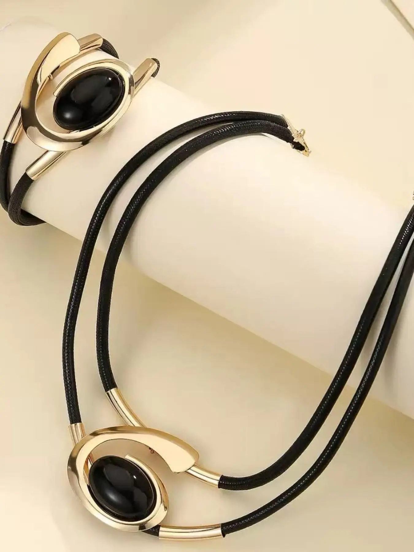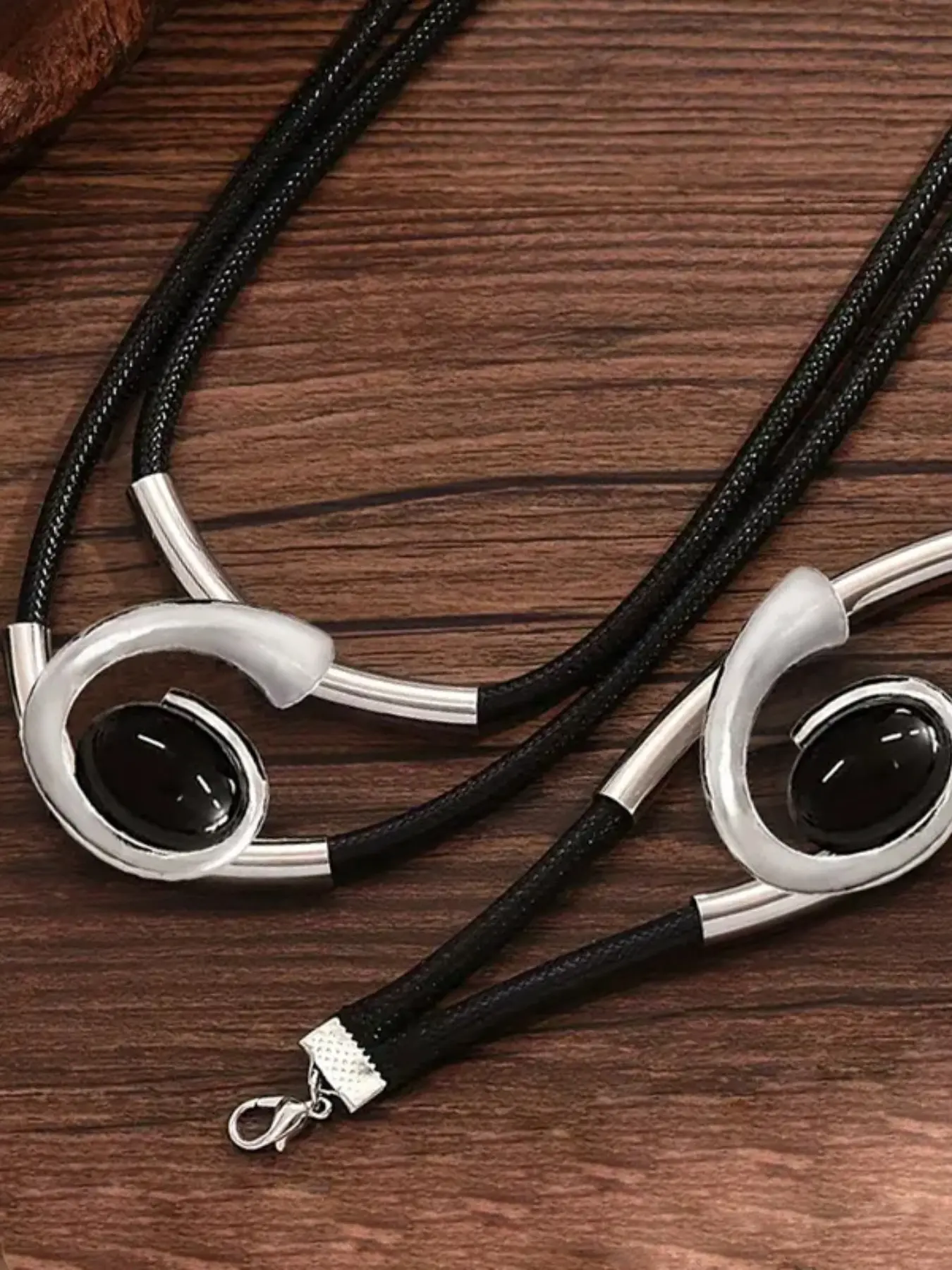 Boho Style Acrylic Gemstone Jewelry Set, Women's Necklace Bracelet Combination, Spiral Snail Design, Fashion Accessory