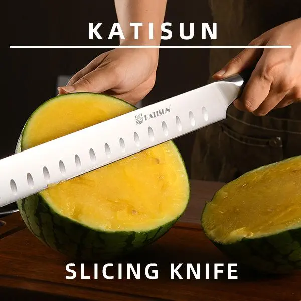 13 Inch Round Tip Ham Slicing Knife, Ultra Sharp German Premium Carbon Steel Brisket Knife Meat Cleaver