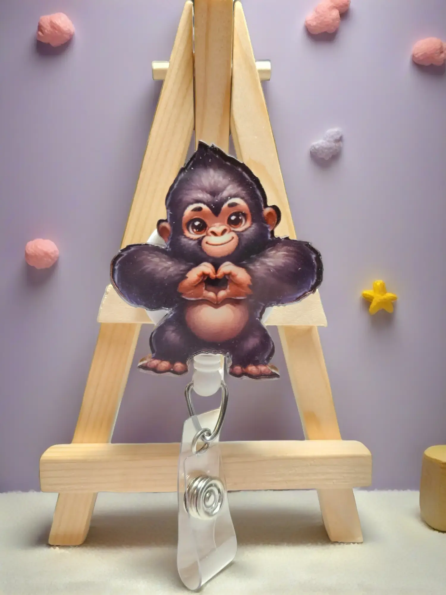 Gorilla Love Retractable Badge Reel with Acrylic Toppers for Nurses Medical Staff Office Staff Students Conventions Sublimation Acrylic Epoxy Attachment