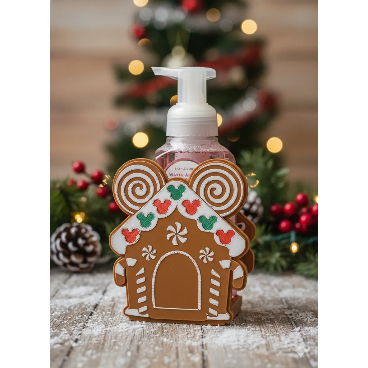Transform your bathroom or kitchen sink into a festive holiday display with this delightful 3D printed gingerbread house soap holder. Designed to perfectly cradle your 8.75 oz liquid soap bottles, this charming holder adds seasonal cheer to your daily handwashing routine.