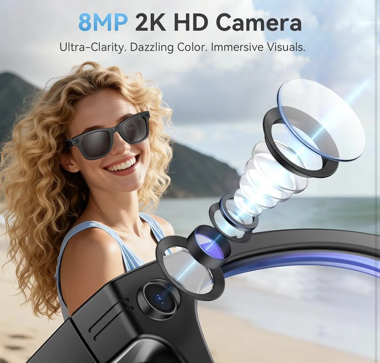 • CAPTURE MOMENTS IN STUNNING 8MP HD: Experience ultimate hands-free recording with built-in 8MP photochromic lenses camera glasses. Perfect for vlogging, hiking, or travel, these smart glasses capture crisp, high-definition photos and videos from your exact point of view without needing a bulky camera.