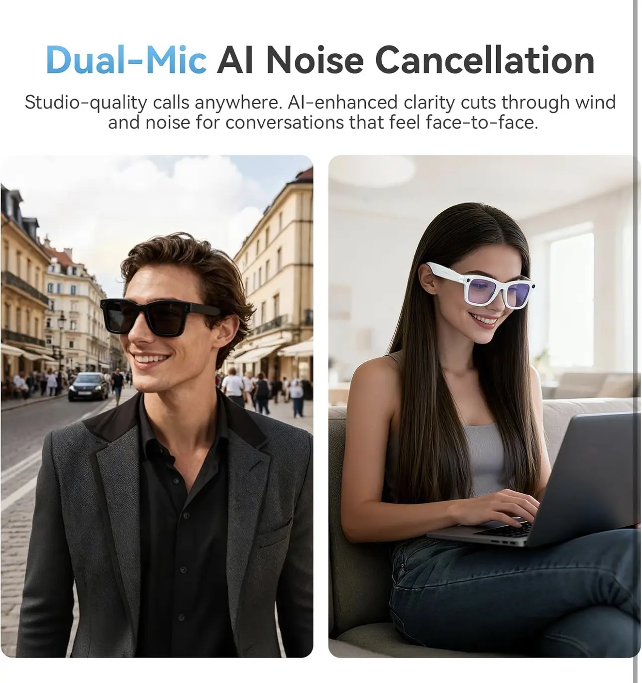 • AI-POWERED VOICE ASSISTANT & AUDIO: Stay connected effortlessly with integrated AI smart glasses technology. Use voice commands to manage calls, play music, or get directions through high-quality open-ear speakers. It is the perfect blend of style and artificial intelligence for a truly modern lifestyle.