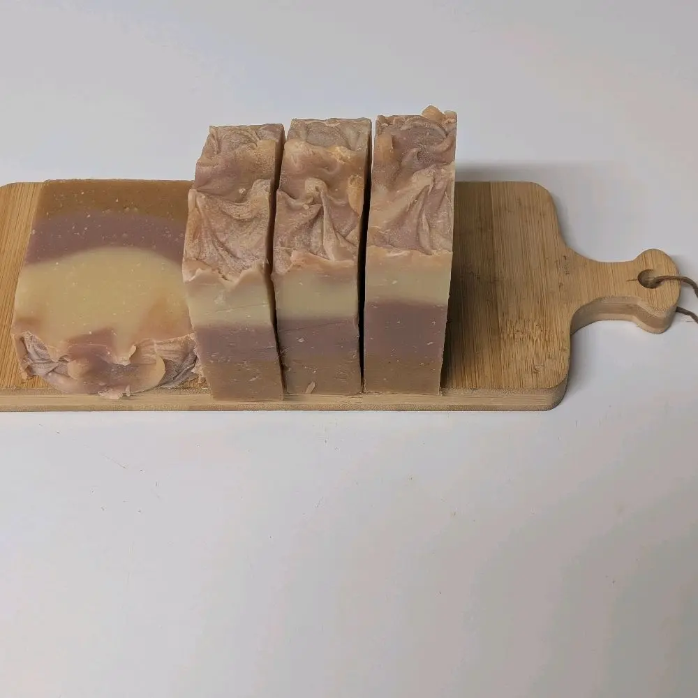 Ingredients: Olive Oil, Rice Brand Oil, Coconut Oil, Castor Oil, Avocado Oil, Shea Butter, Kaolin Clay, Collider Oatmeal, Tussah Silk, Sodium Hydroxide and Mica, Fragrance Oil.