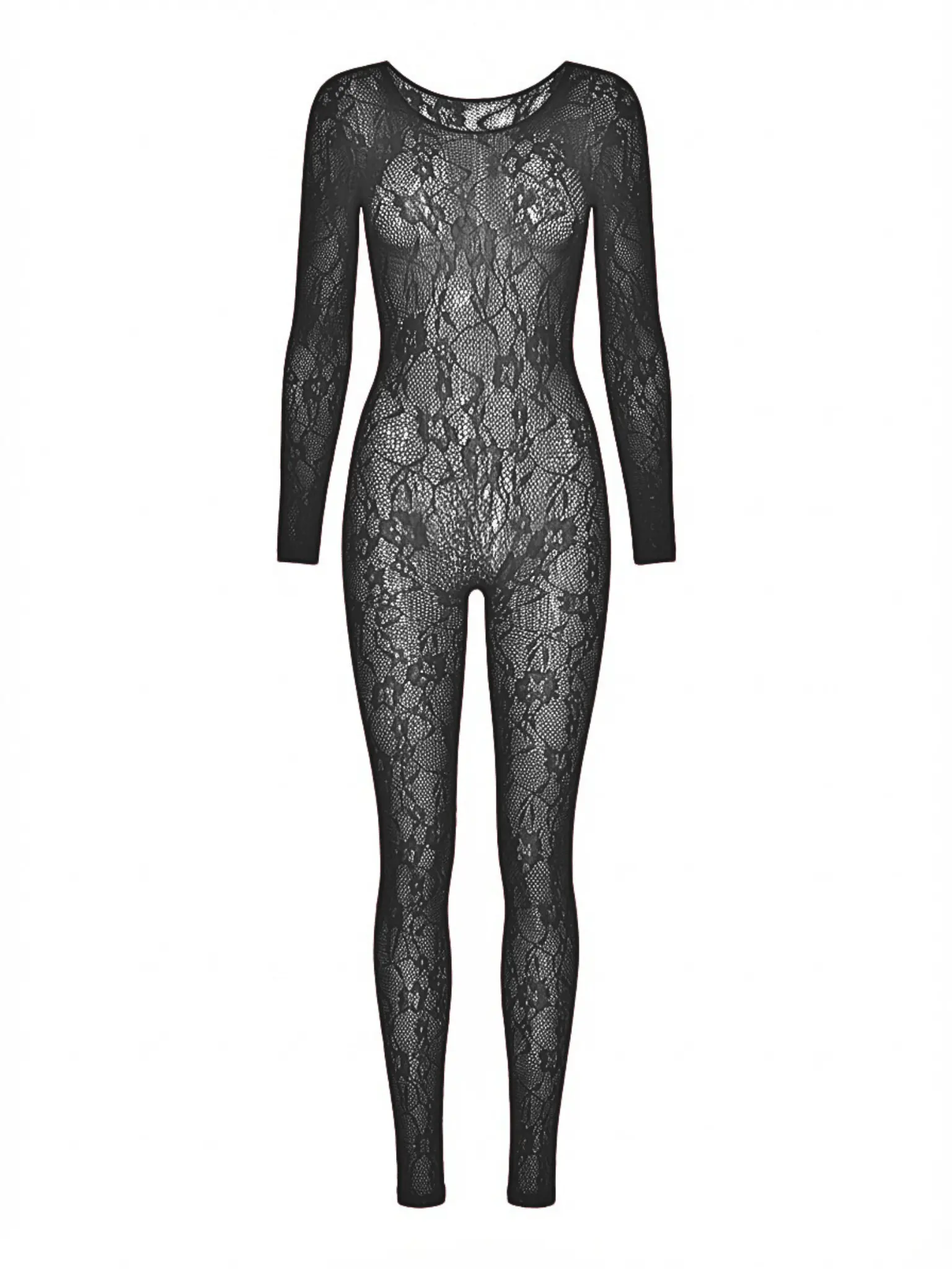 Romantic lace, fearless silhouette. This off-the-shoulder lace bodysuit features intricate floral patterning in a sculpted bodystocking silhouette that hugs from neckline to toe. The seamless, second-skin fit delivers bold sexy lingerie appeal with a refined edge, creating a look that feels confident, elevated, and impossible to ignore.
