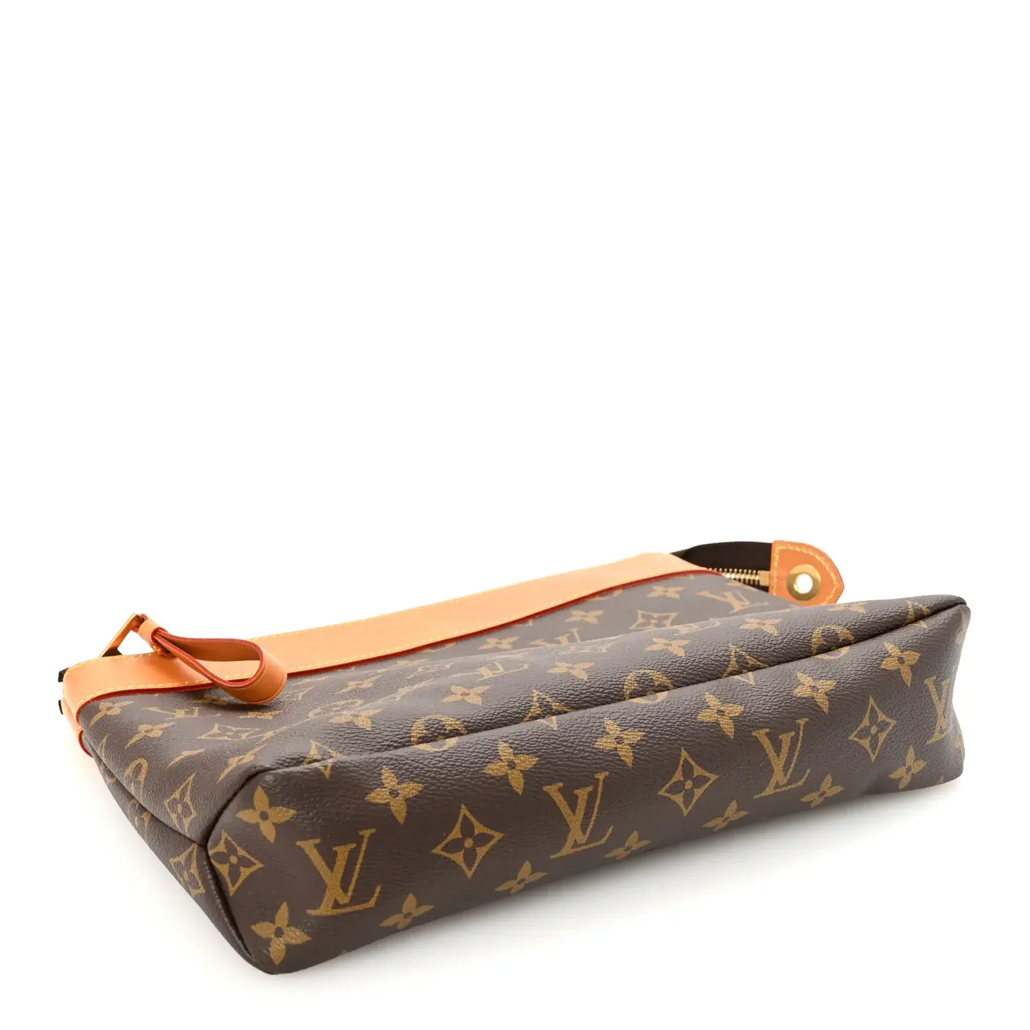 This is an authentic LOUIS VUITTON Monogram Archive Pochette Voyage Souple. This chic pochette is crafted of Louis Vuitton monogram coated canvas. The pouch features vachetta trim and gold hardware. The top zipper opens to a dark brown fabric interior with patch pockets.