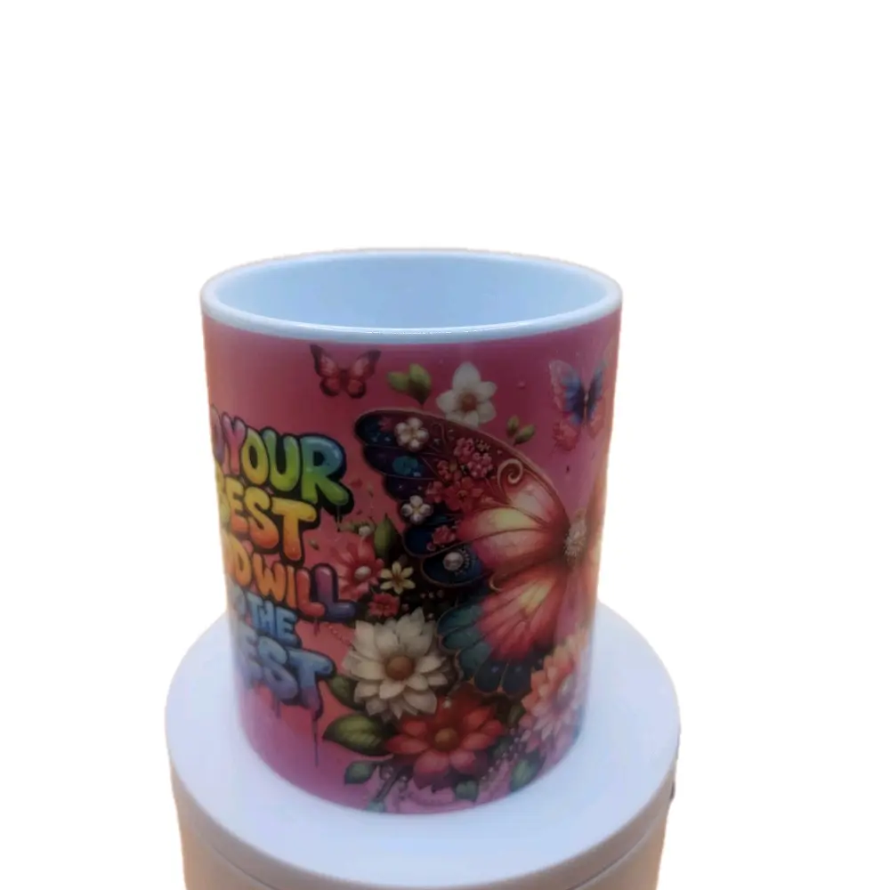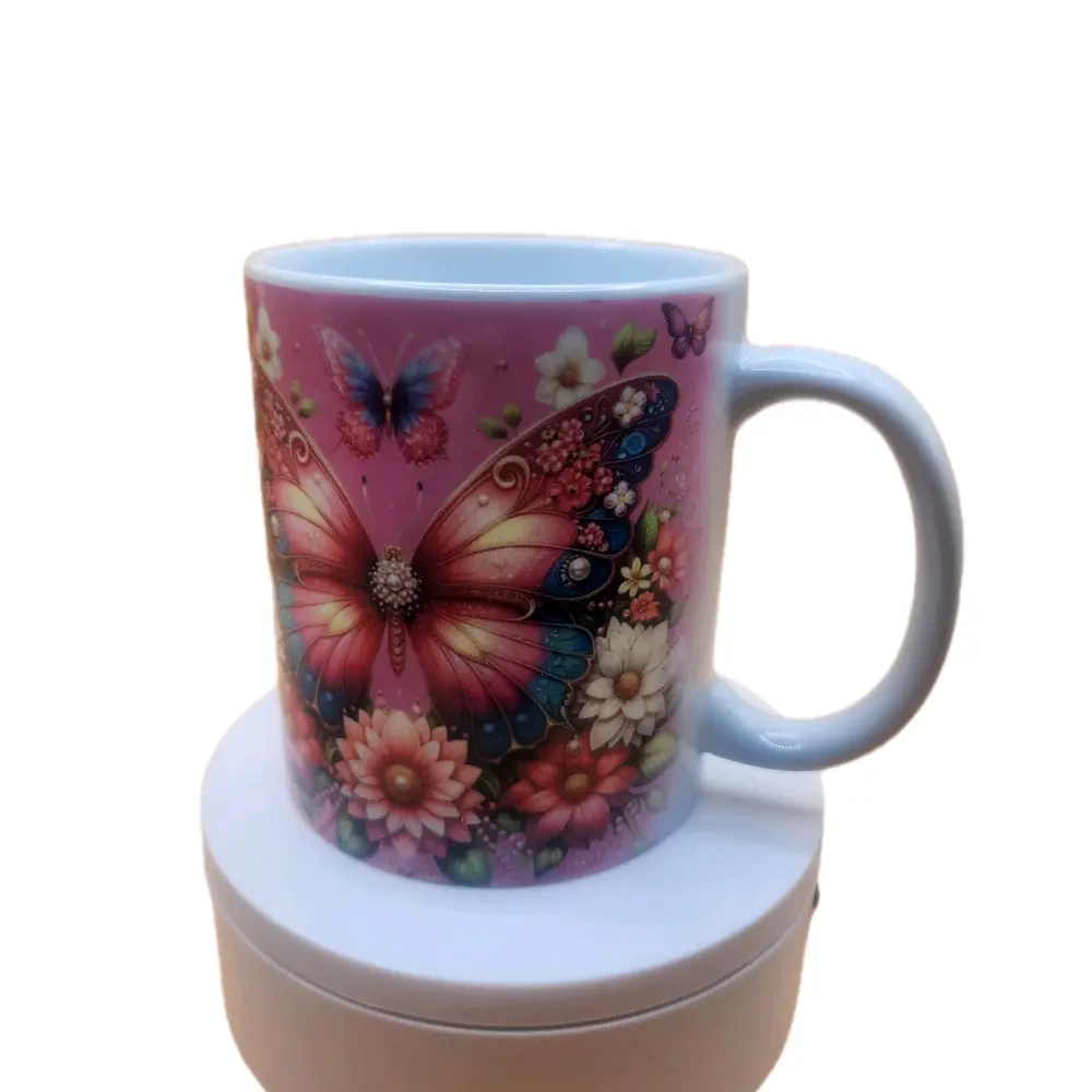 Butterfly Coffee Mugs with Floral Design, Pink Color, 12 oz Capacity, Ideal for Daily Use
