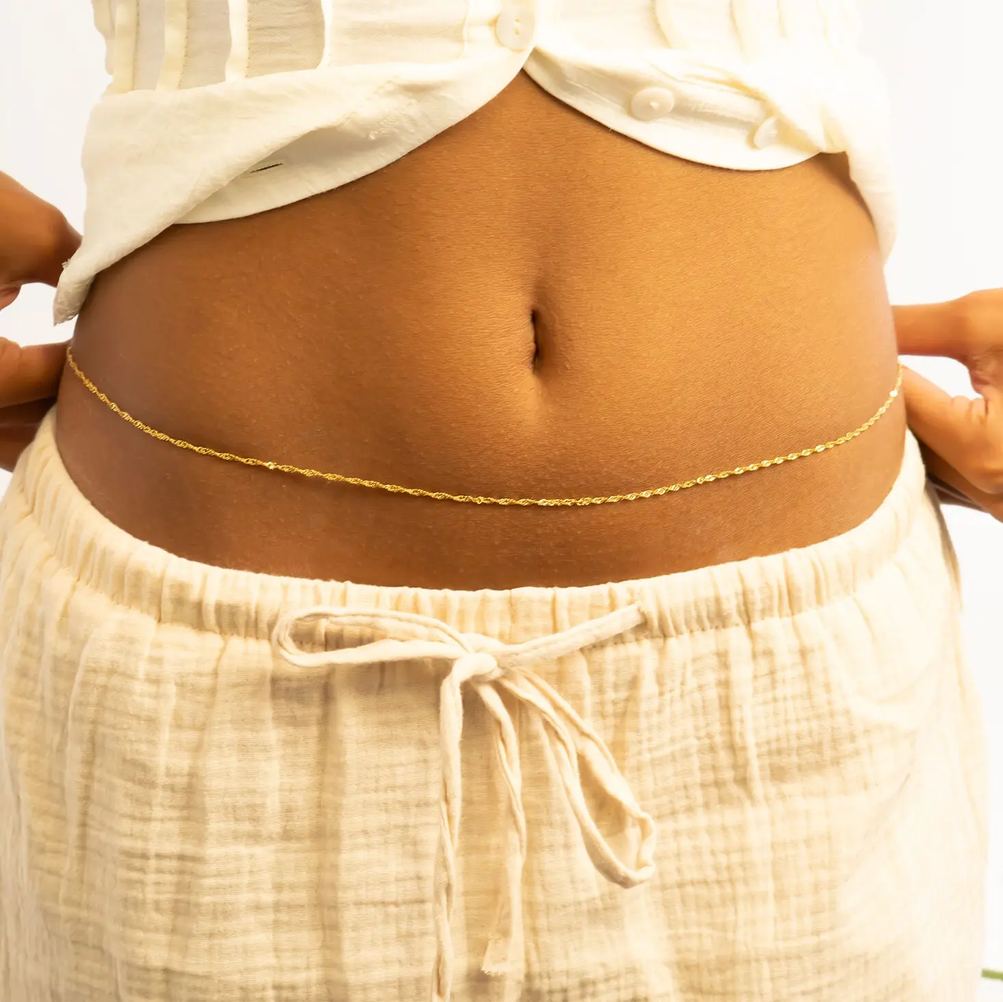 Elevate your look with this Singapore Belly Chain, featuring a sleek, twisted design that catches the light beautifully. Lightweight and comfortable, it’s perfect for layering or wearing on its own for a subtle yet elegant touch. Treat yourself or gift someone special a piece that feels effortlessly stylish and timeless.