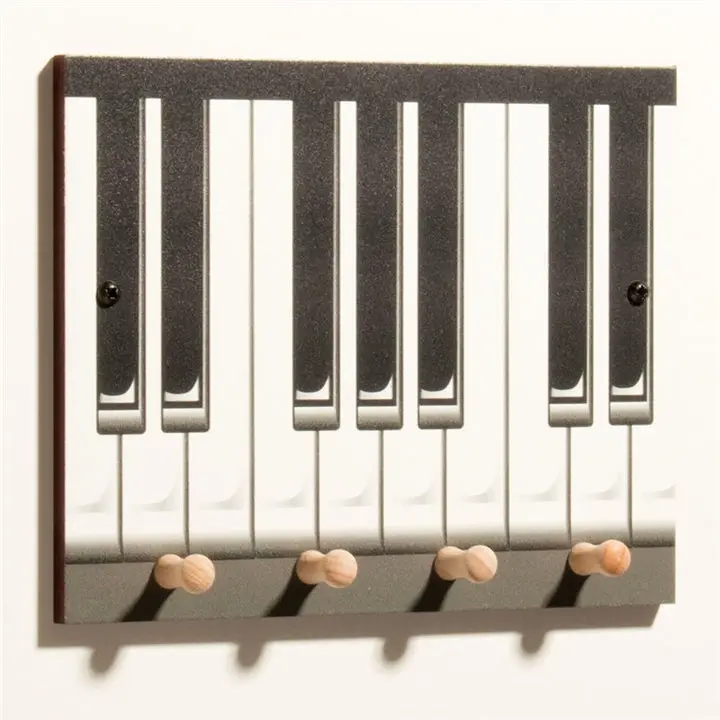 Keep your household in tune with our bold key rack. Four wood pegs mean you'll always know where your keys, lanyards, and pet leashes are. Mounting screws included. 9" x 7" x 1 1/2" deep. Made in England.