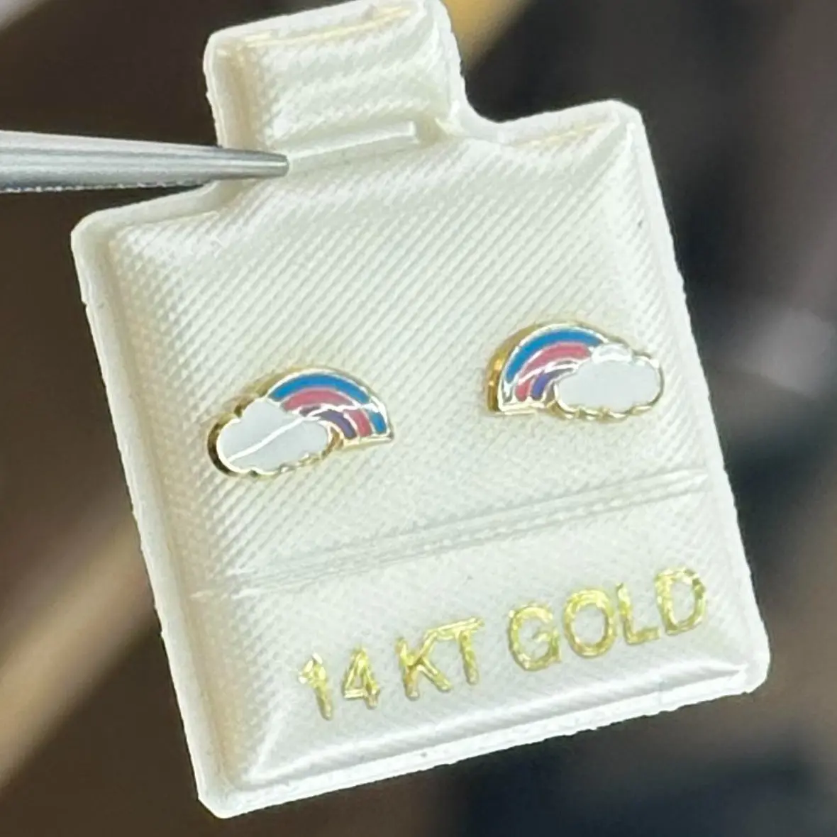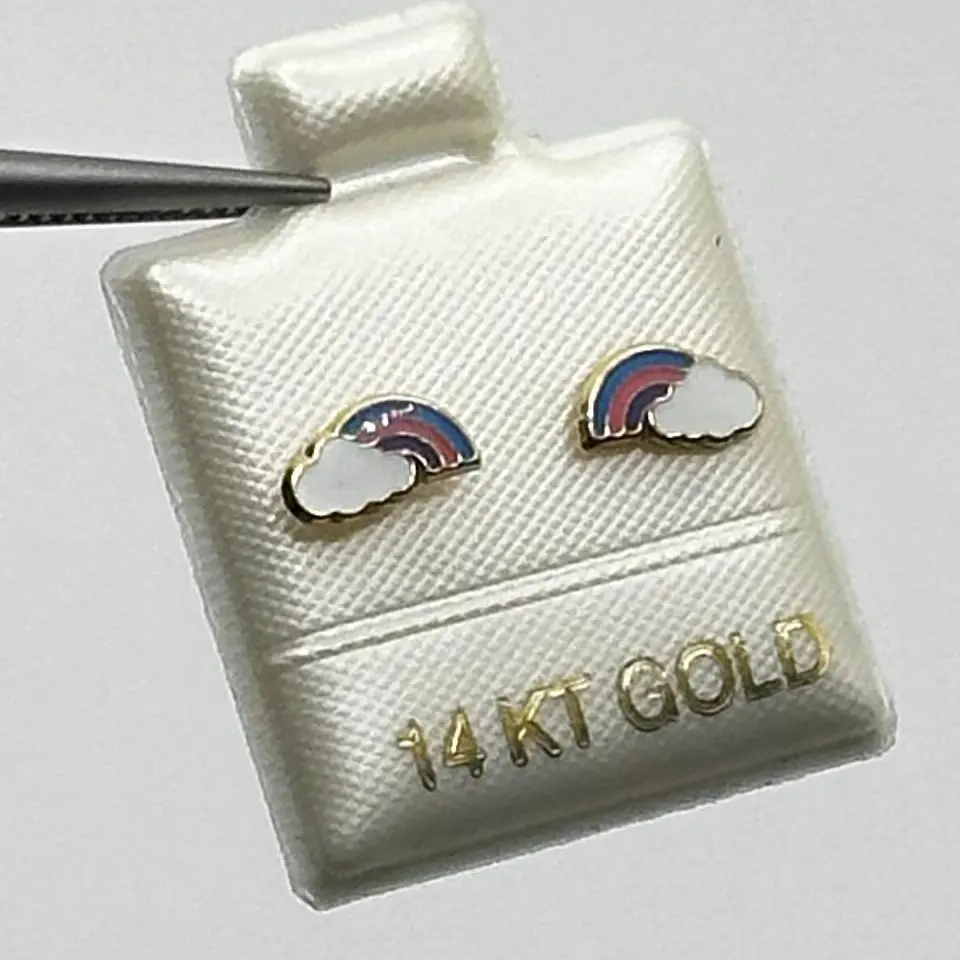 Cute 14k rainbow screw back earrings, perfect for babies as they are very comfortable