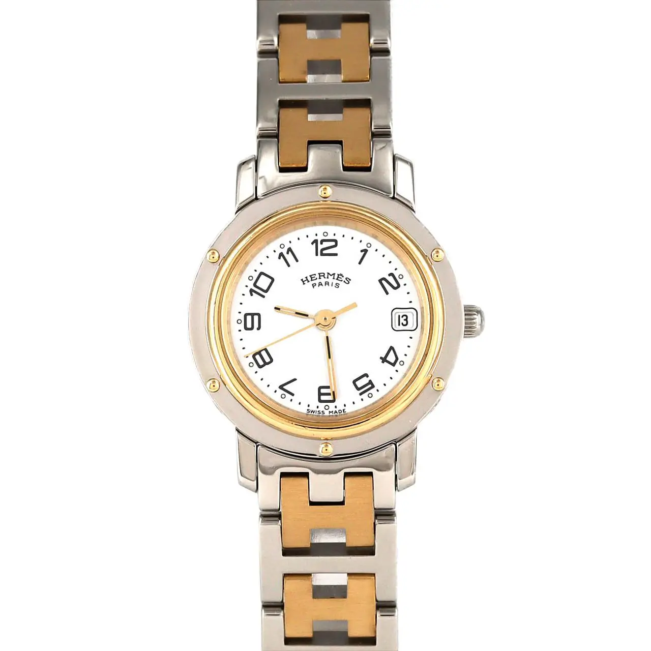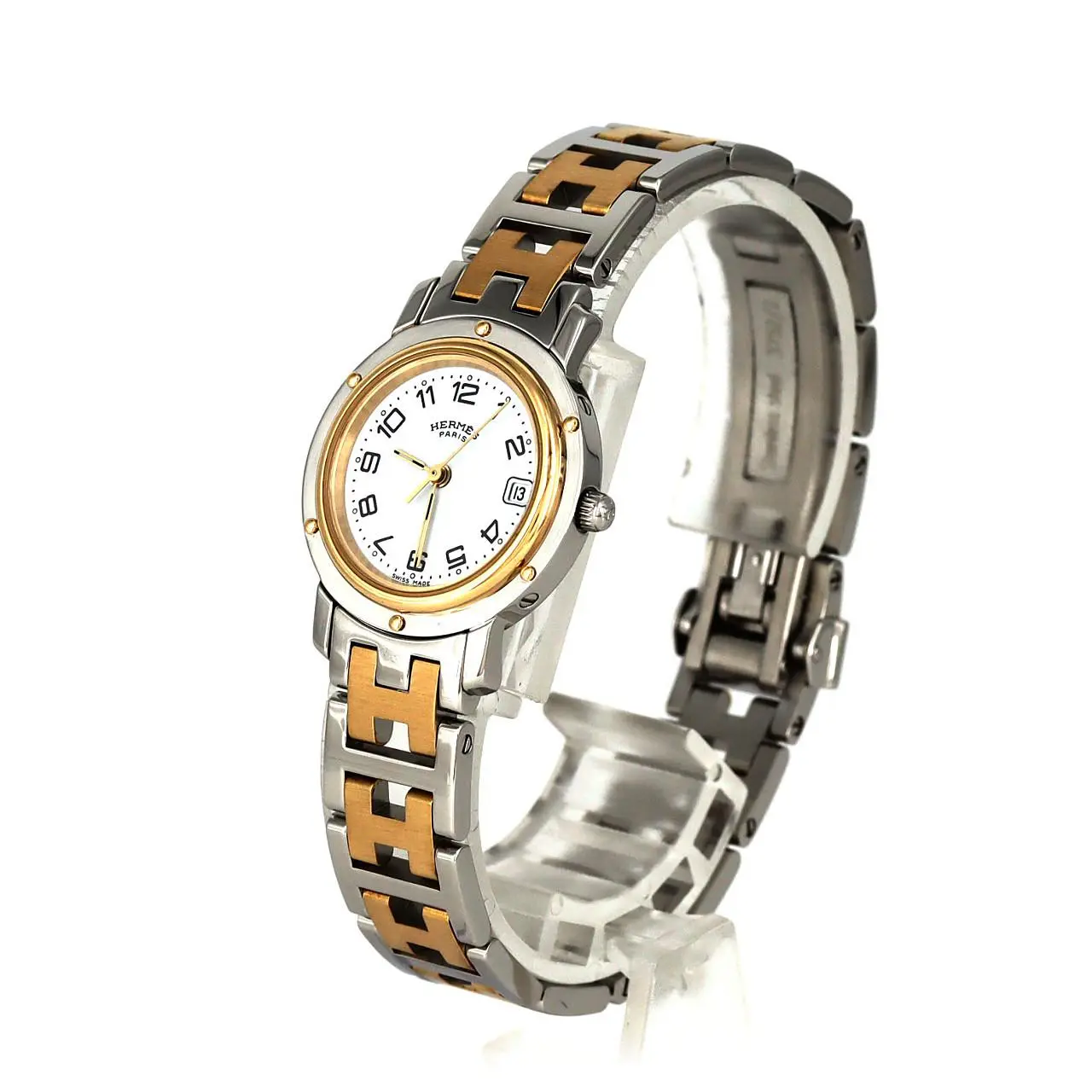 Pre-owned HERMÈS Stainless Small Leather Goods Hermes Clipper Quartz
